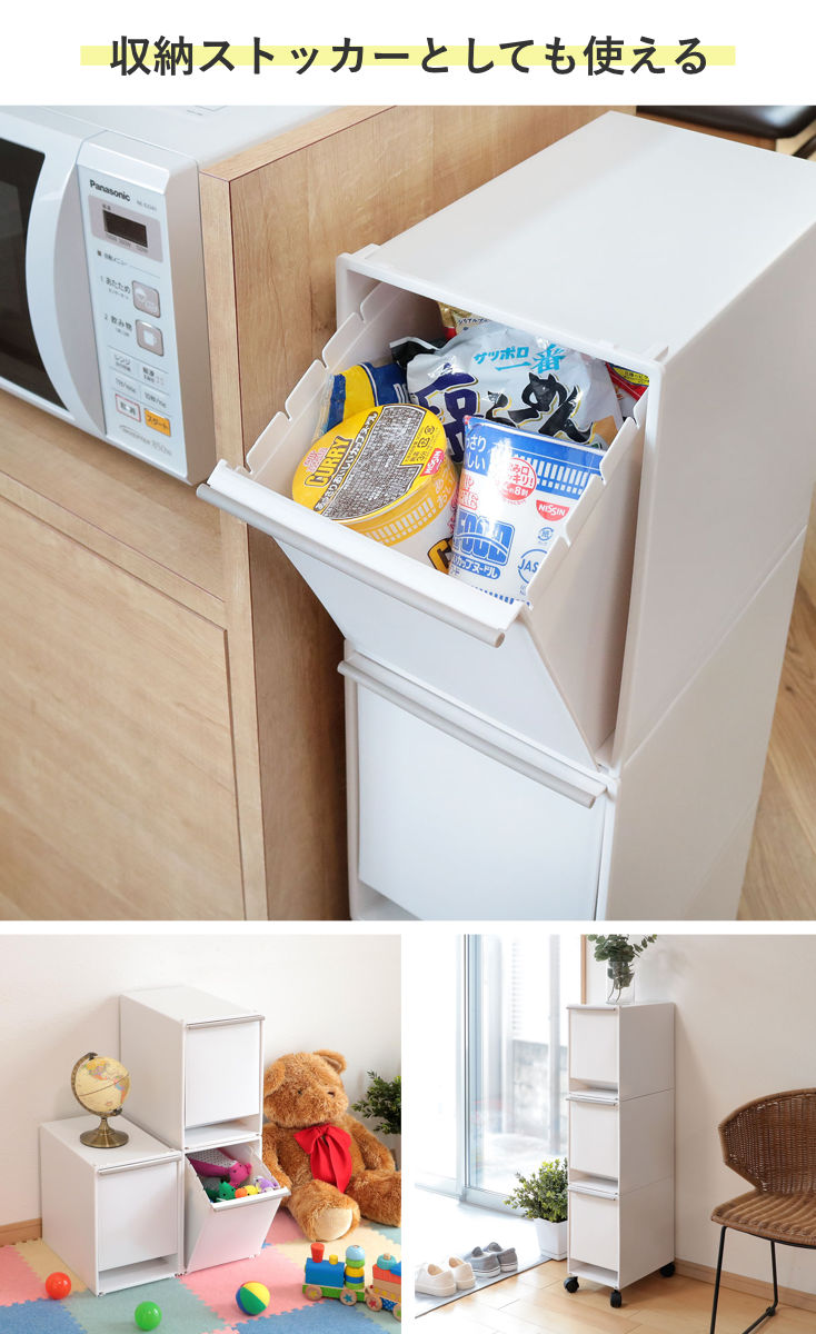 キッチンの分別用ゴミ箱としてはもちろん、保存食のストッカー、子供部屋の収納ボックス、洗面所や玄関収納など用途に合わせて様々なシーンでご使用いただけます。