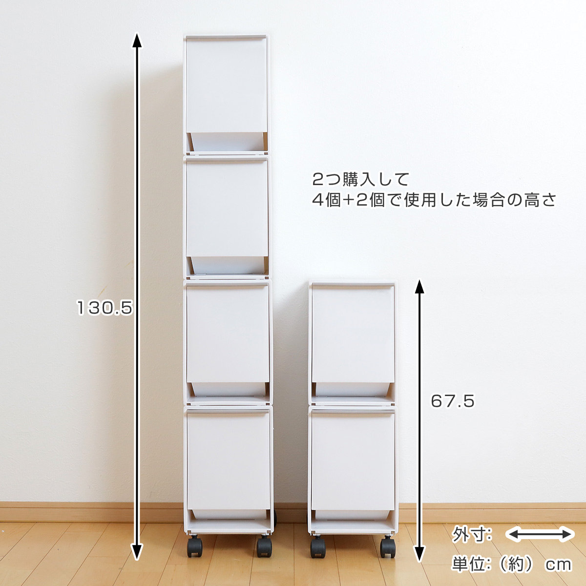 高さが99.2cm、奥行が35.5cmあるので、スリム形状でもしっかり収納できます。一段の容量は約12.5L、500mlのペットボトルを約11本入れることができます。