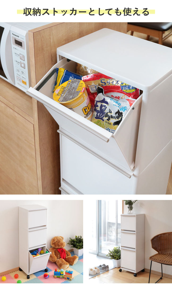 キッチンの分別用ゴミ箱としてはもちろん、保存食のストッカー、子供部屋の収納ボックス、洗面所や玄関収納など用途に合わせて様々なシーンでご使用いただけます。