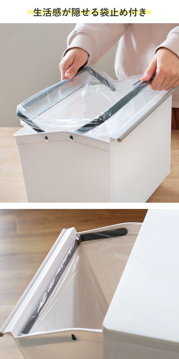 ゴミ袋は袋止めにさっと掛けるだけで、手間なくセット完了。外から袋が見えないため生活感を与えず、お部屋の雰囲気を損ないません。