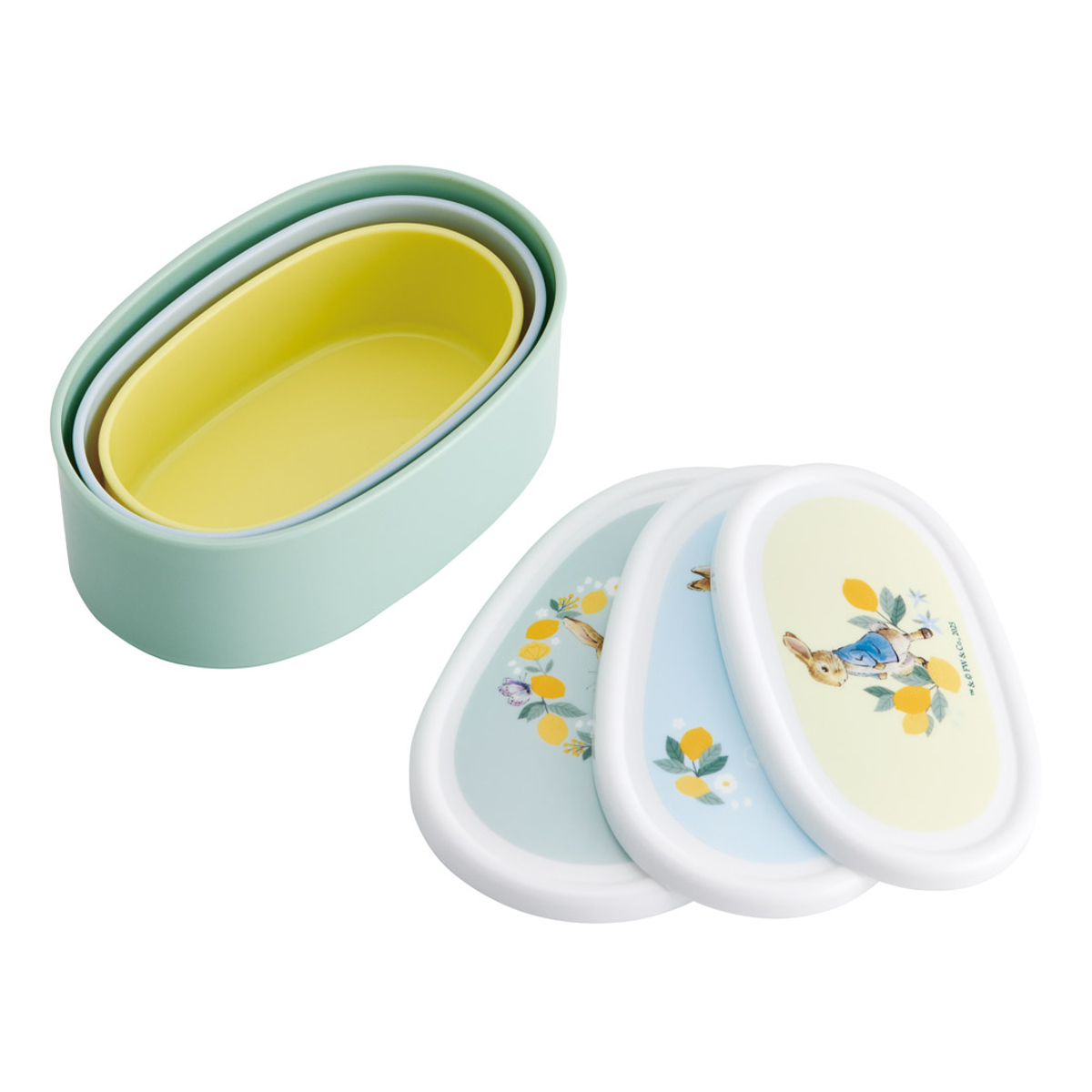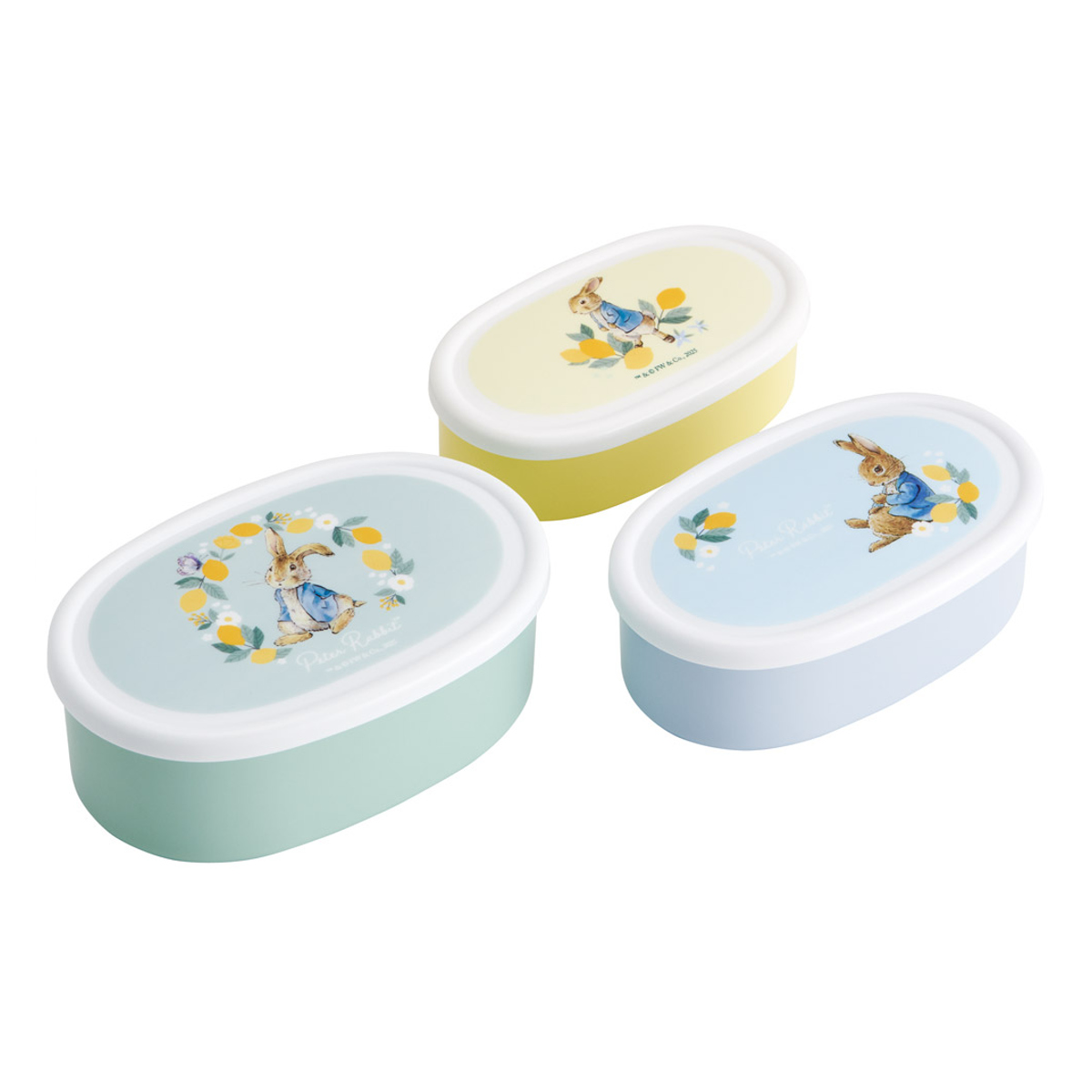 3サイズが1セットになったランチボックスです。抗菌加工が施されているのでお子様も安心です。大サイズが約400ml、中サイズが約280ml、小サイズが約180mlです。ご飯、おかず、デザートなどメニューによって容器を使い分けることができます。お弁当箱としてだけではなく、保存容器としてもお使いいただけます。