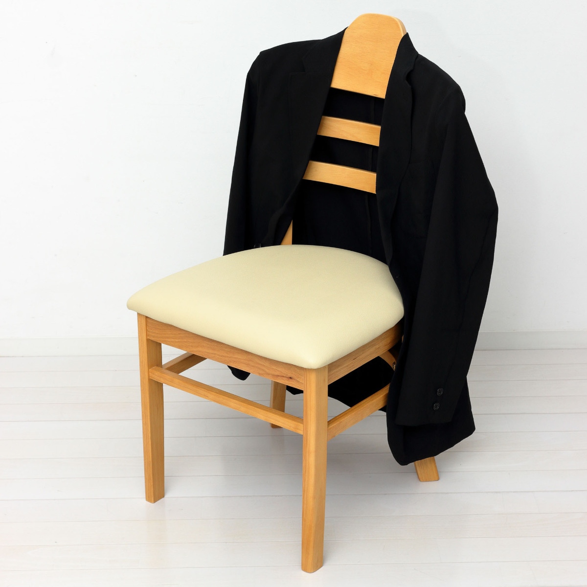 ●背もたれはハンガー形状で、上着を掛けやすくチェアまわりをすっきり見せます。