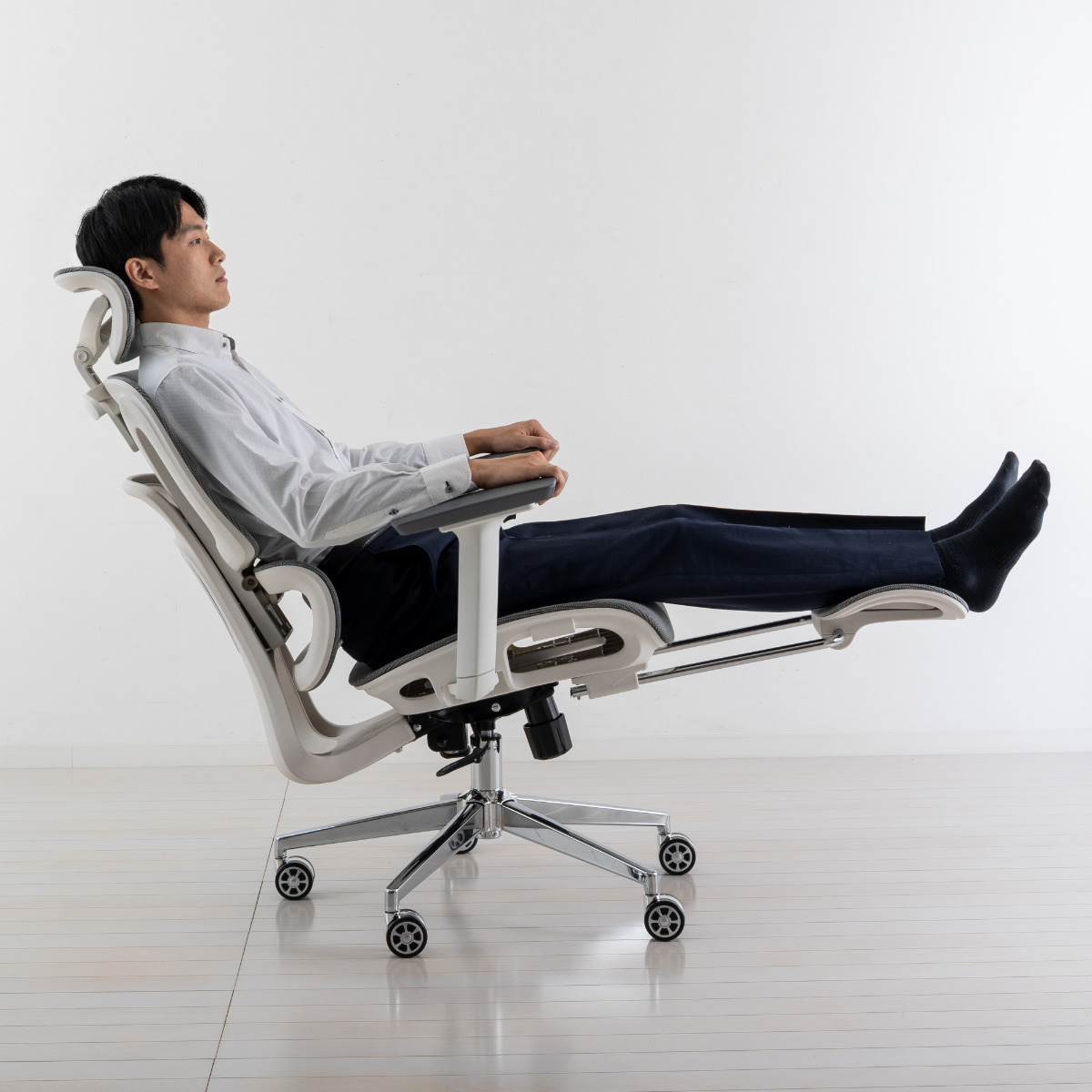 高さや角度の調整機能やリクライニング、フットレストなどを備えた多機能チェアです。デスクワーク時は安定した姿勢を支え、休憩時は身体を預けてくつろげる設計。オン・オフの切り替えがしやすく、幅広いシーンで活躍します。