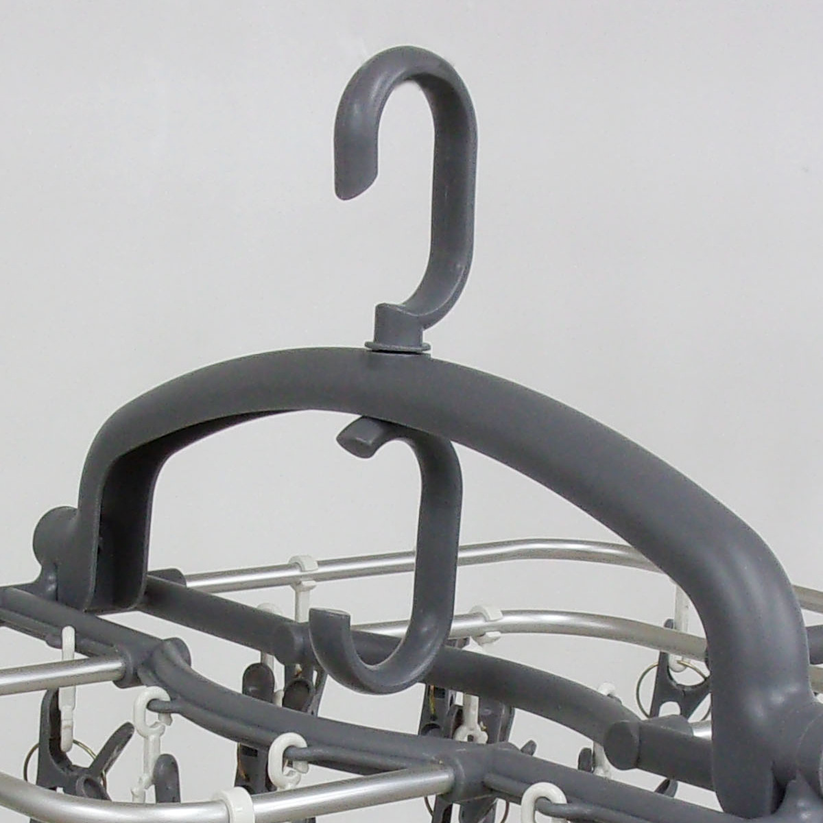 ピンチが32個付いたアルミフレームの角ハンガーです。小物を一度に干したい人に便利なサイズです。やさしい丸みが魅力のフォルムと、はっきりしたカラーにマットな質感がオシャレなデザインです。お洗濯がなんだか楽しくなる、インテリアとしても優秀なアイテムです。