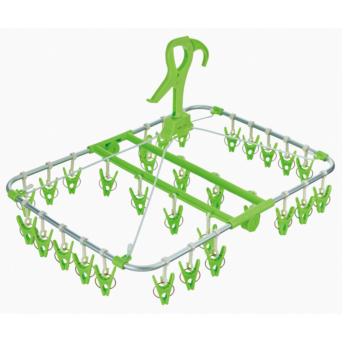ピンチが30個付いたアルミフレームの角ハンガーです。一度にまとめて干せるので、共働き・忙しい家庭の方におすすめのサイズです。