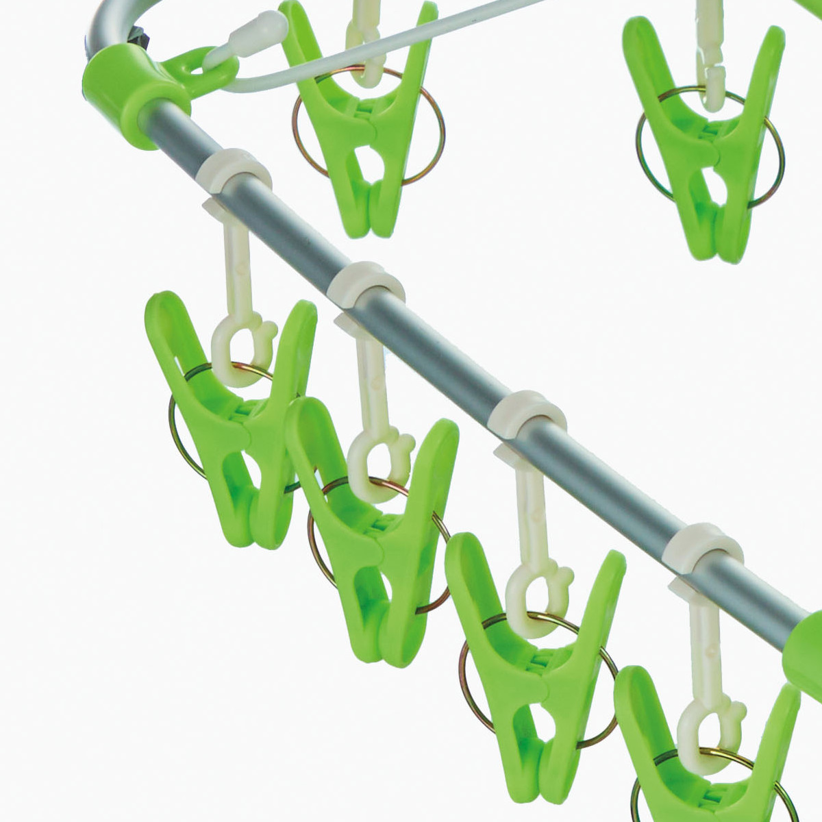 物干し竿や洗濯ロープにしっかりと固定できるキャッチフック式です。