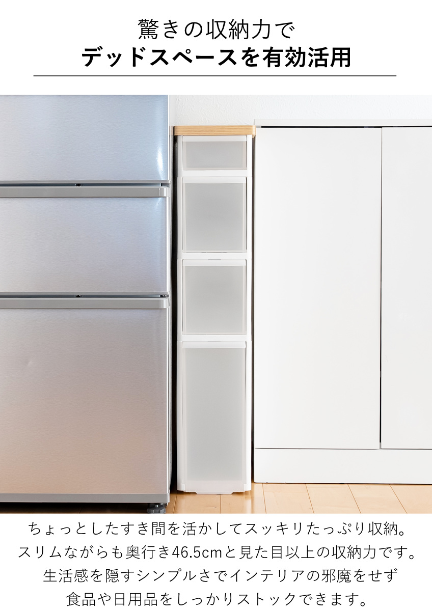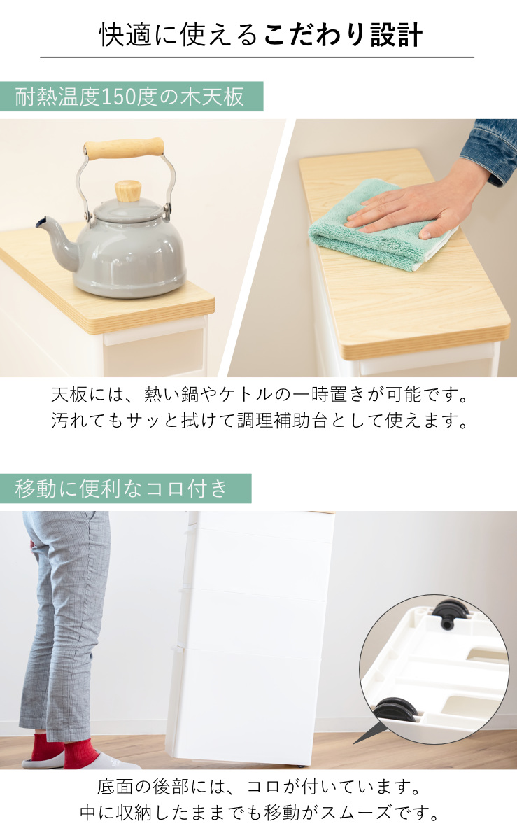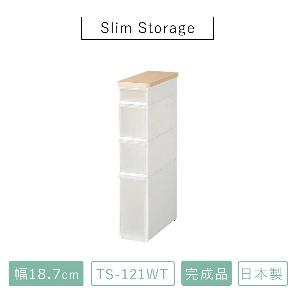 キッチンストッカー スリムストレージ 耐熱木天板 スリム 4段 幅18.7cm TS-121WT