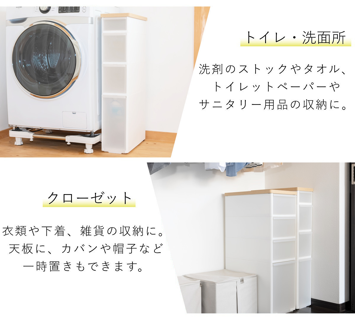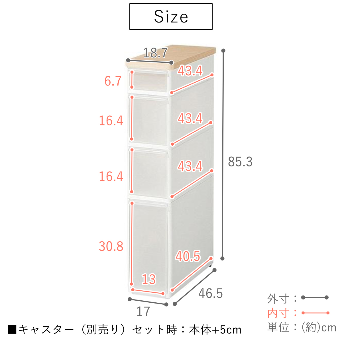 | 材質 | 本体・引出し:ポリプロピレン 木製天板:表面/化粧合板(メラミン加工)、芯材/繊維材(MDF) |