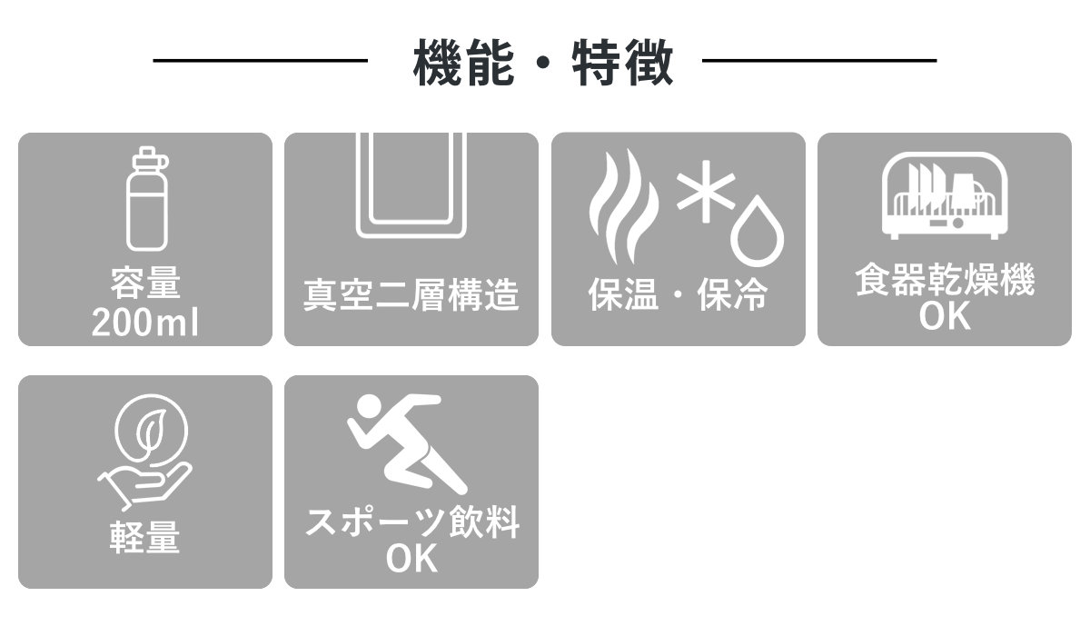 | 材質 | 本体:ステンレス鋼(SUS304) せんセット:ポリプロピレン パッキン部:シリコーンゴム BPAフリー |