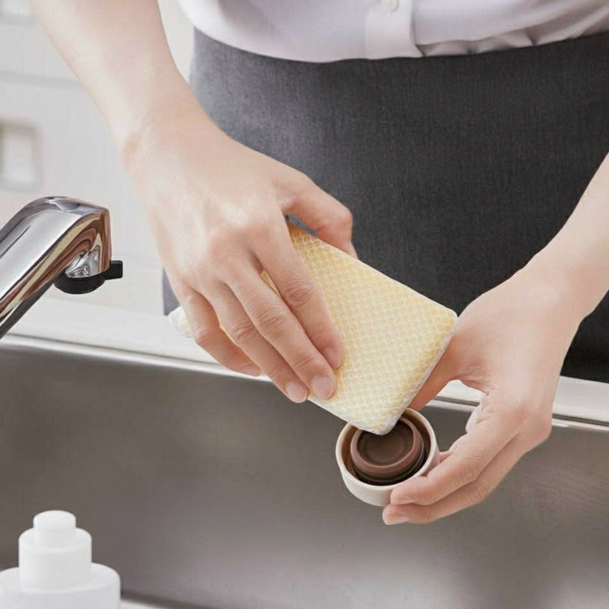 パッキンを外す必要がないため、つけ忘れや紛失の心配も一切なし。面倒なお手入れが驚くほど楽になります。パッキン部分は露出しており、スポンジが当たりやすくお手入れしやすい構造です。