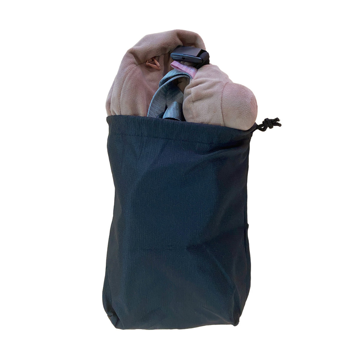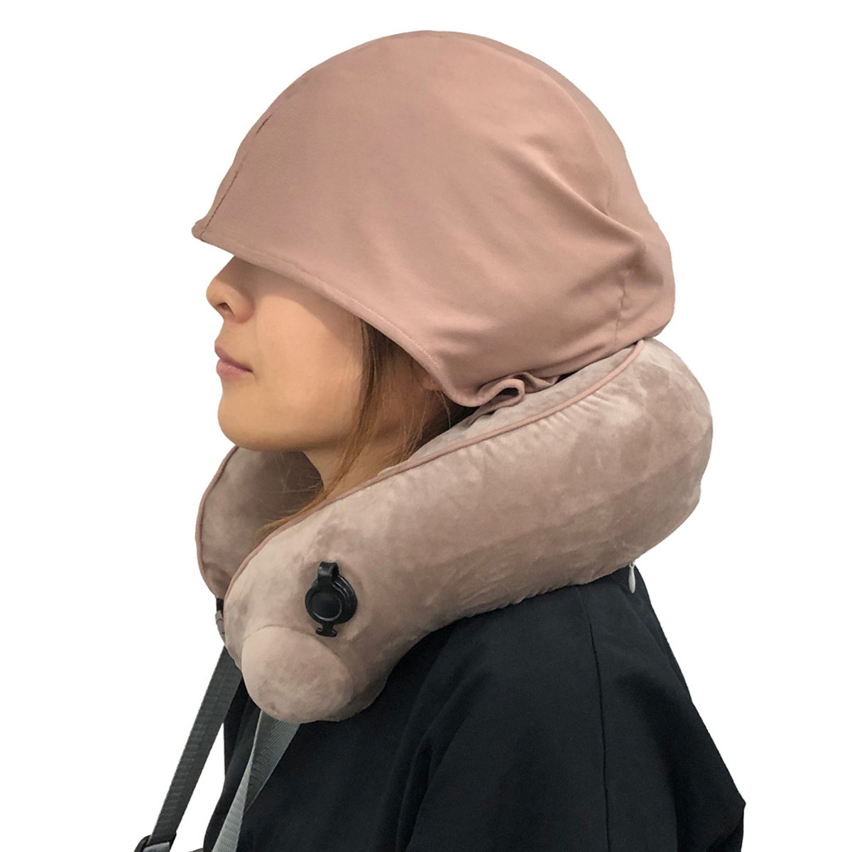 肌に優しいベロア調外装材のフード付きです。機内や車内で光を遮り、寝顔も隠せるので、気持ちまでリラックスできます。