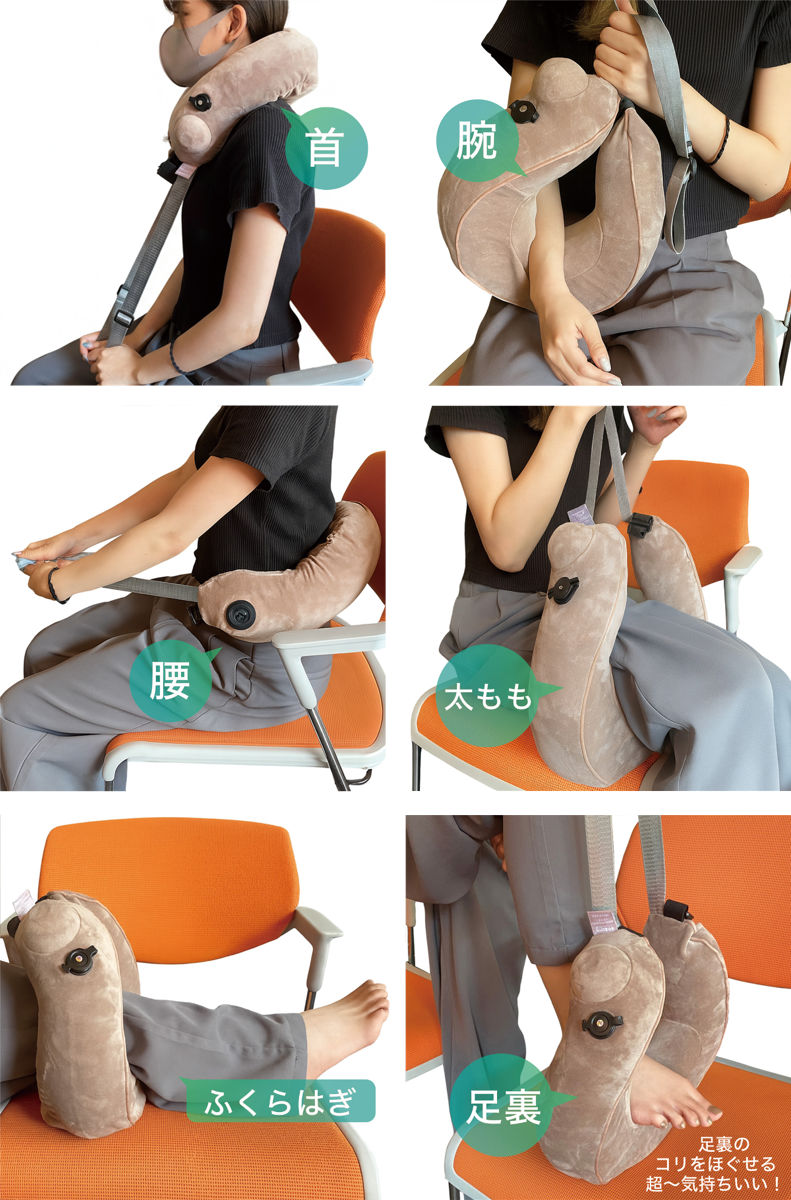 首だけでなく、腕、腰、太もも、ふくらはぎ、足裏と、体の色んな部位に使用できます。