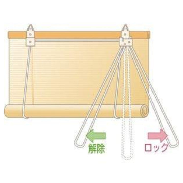 右操作の場合、操作紐を右に引くとロックがかかり、左に引くとロックが解除され、スクリーンを昇降することができます。