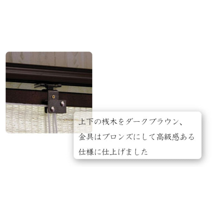 従来品とは違う後染めで、より鮮やかに染め上がります。上下の桟木をダークブラウン、金具はブロンズにして高級感ある仕様に仕上げました。