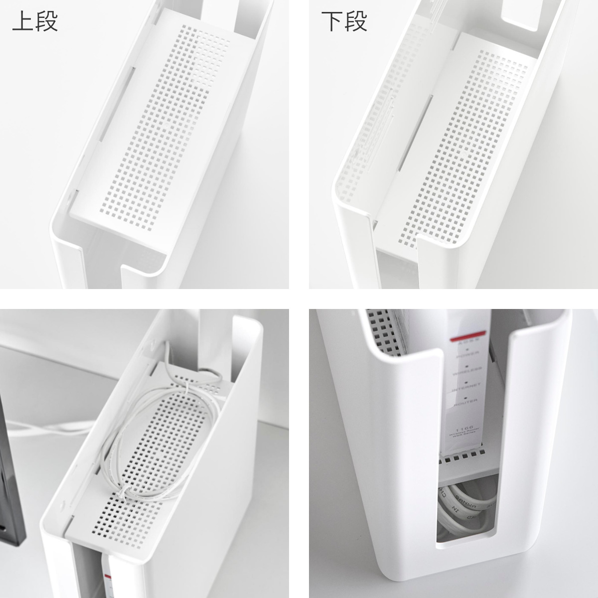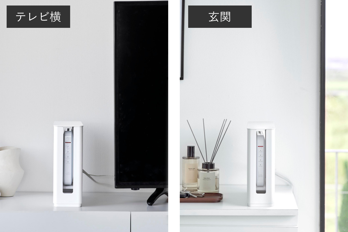 モデムやルーターが複数ある場合は、蓋を外すと2個までスタッキングが可能です。重ねておけばスペースの有効活用ができ、お部屋をすっきりとした印象に見せてくれます。