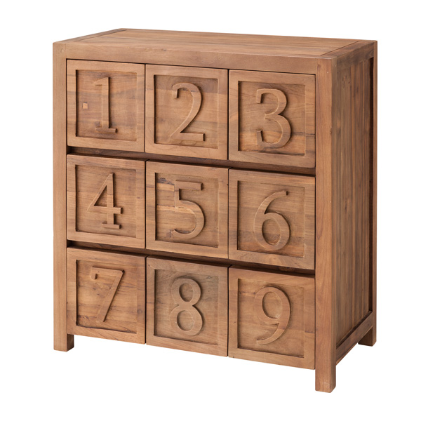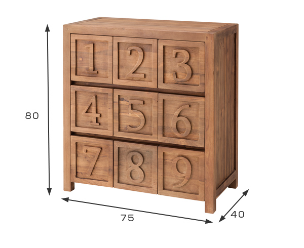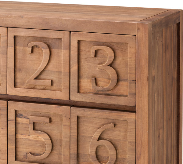浮かし彫りデザイン 個性的なデザインのチェスト。天然チーク材で木目も質感もとても雰囲気よく仕上がっています。 | ||