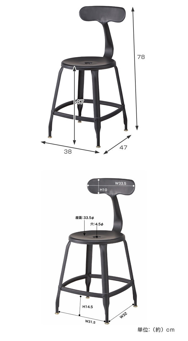 | サイズ | 約 幅38×奥行47×高さ78×座面高さ47(cm) 重量:約5.5kg |