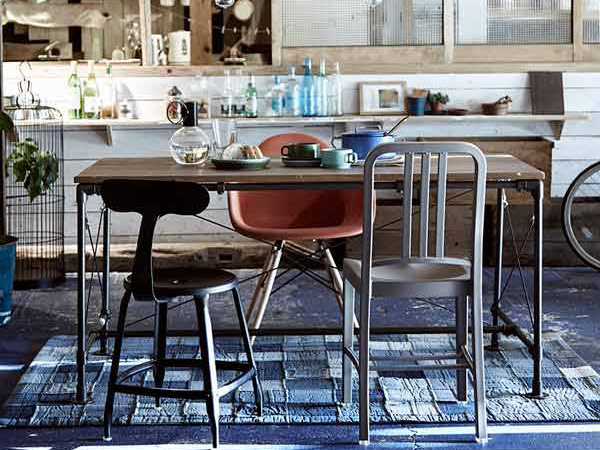 お洒落でスマート 限られたスペースでも広々と活用できるスマートさも嬉しいポイント。ダイニングチェアとしてはもちろん、色んな使い道がある置くだけでお洒落な雰囲気になるチェアです。 | ||