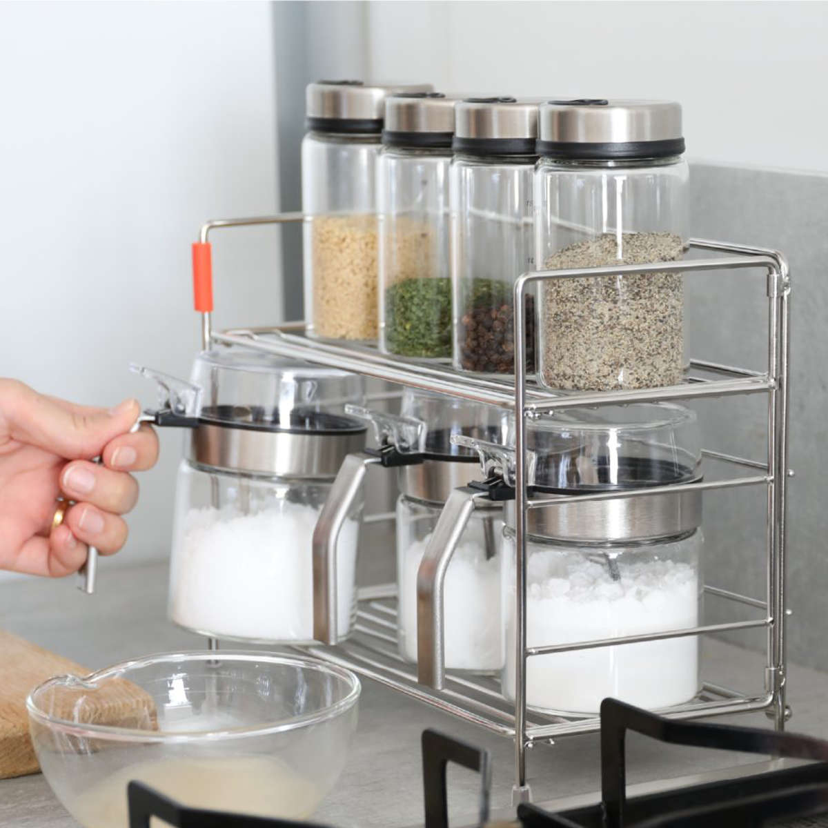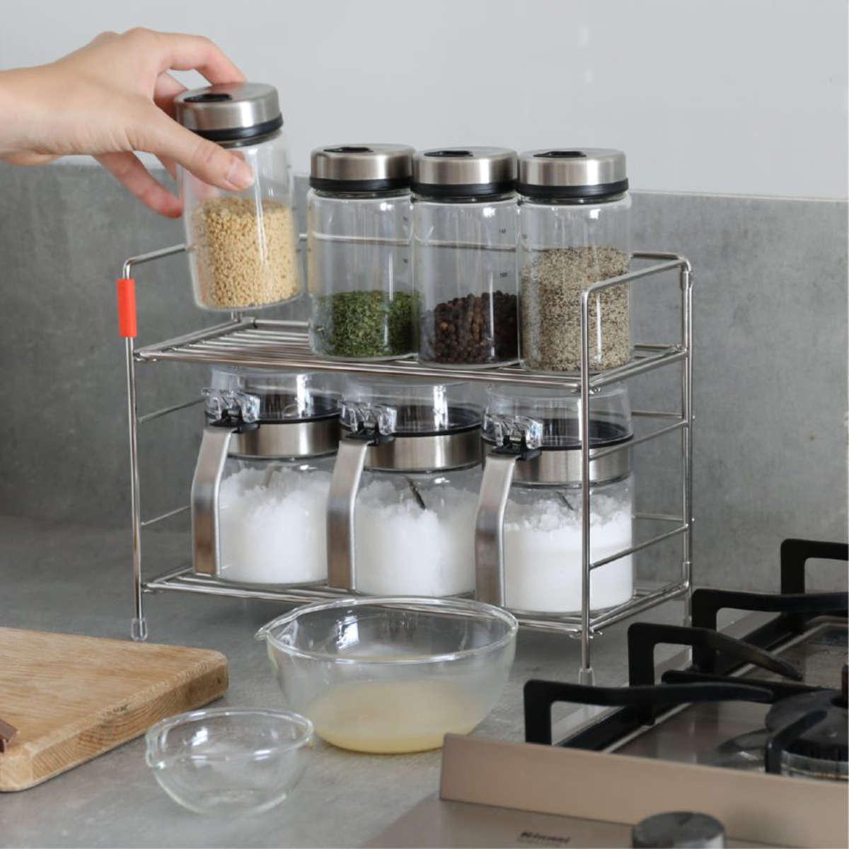 使いやすさと収納力を兼ね備えた、シンプルで機能的なデザインが魅力の調味料ラックです。美しく、実用性に優れたフォルムで、キッチンをすっきりと整えてくれます。