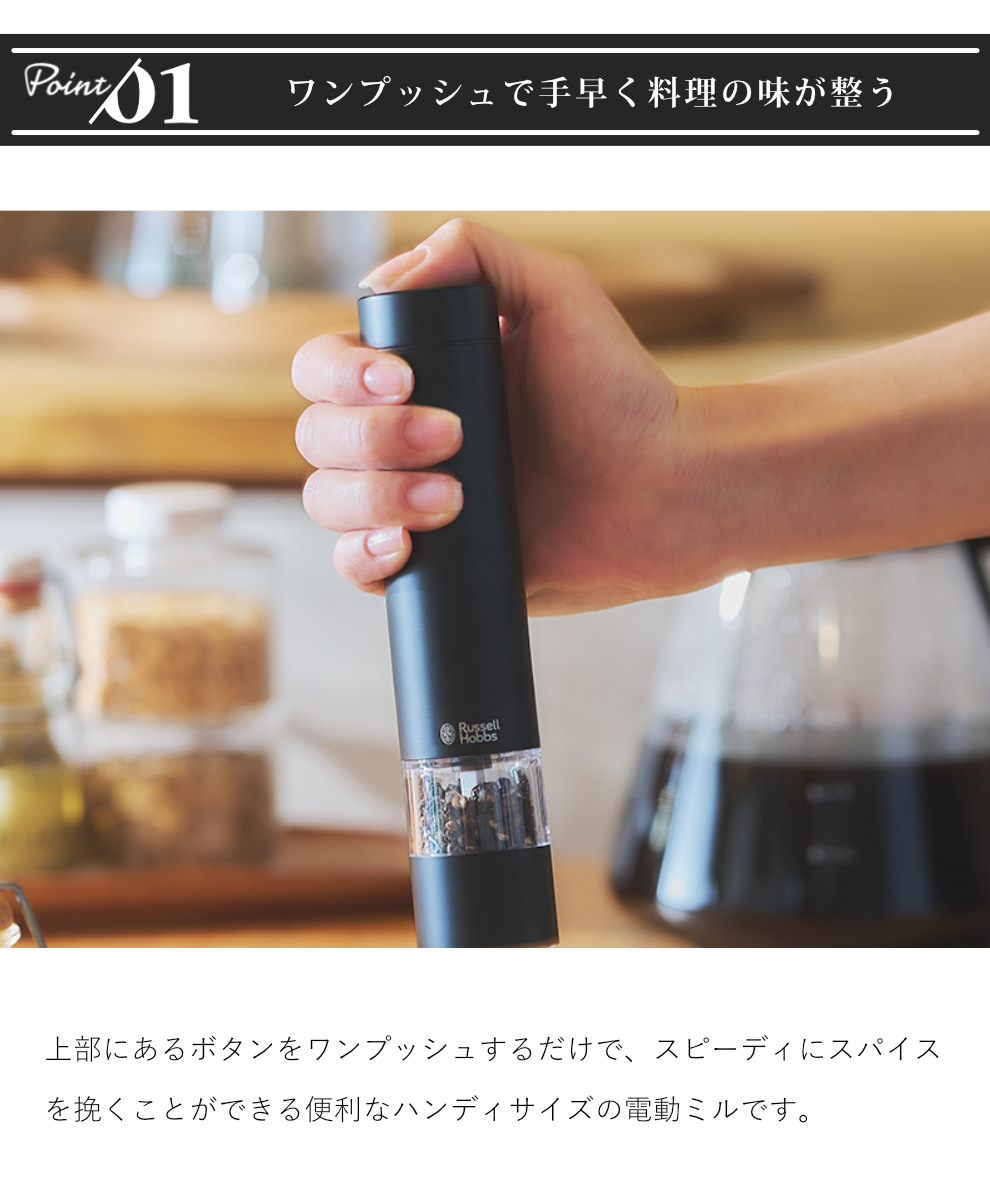 おしゃれなラッセルホブスの電動ミルは、新生活を始めるご家族・ご友人への応援プレゼント、引っ越し祝い・結婚祝いのギフトにもおすすめです。