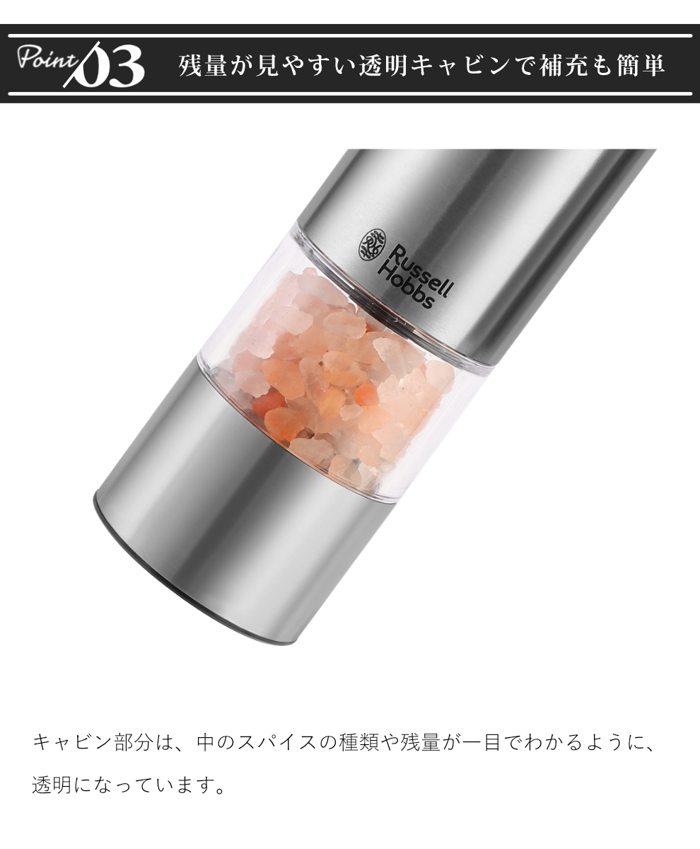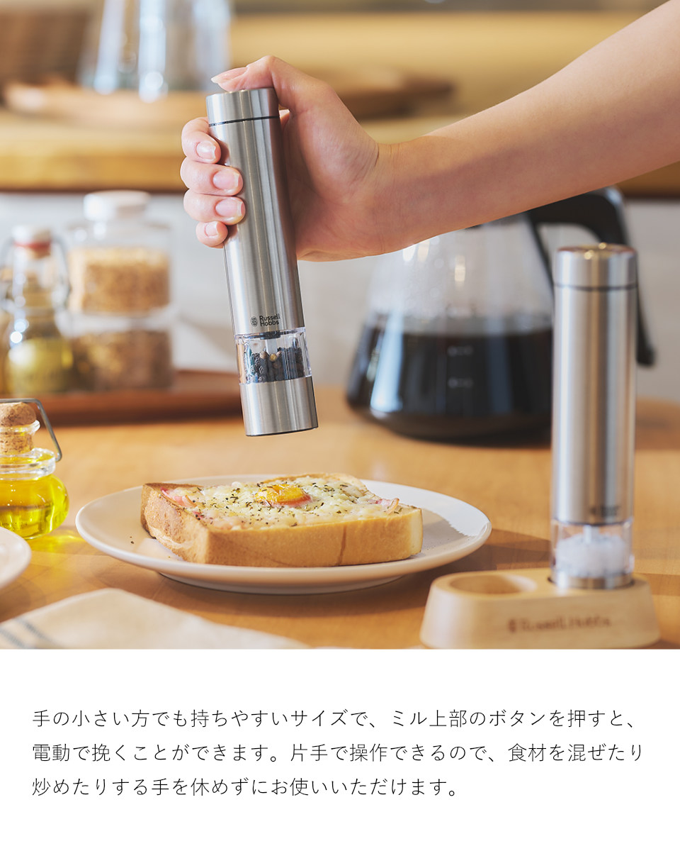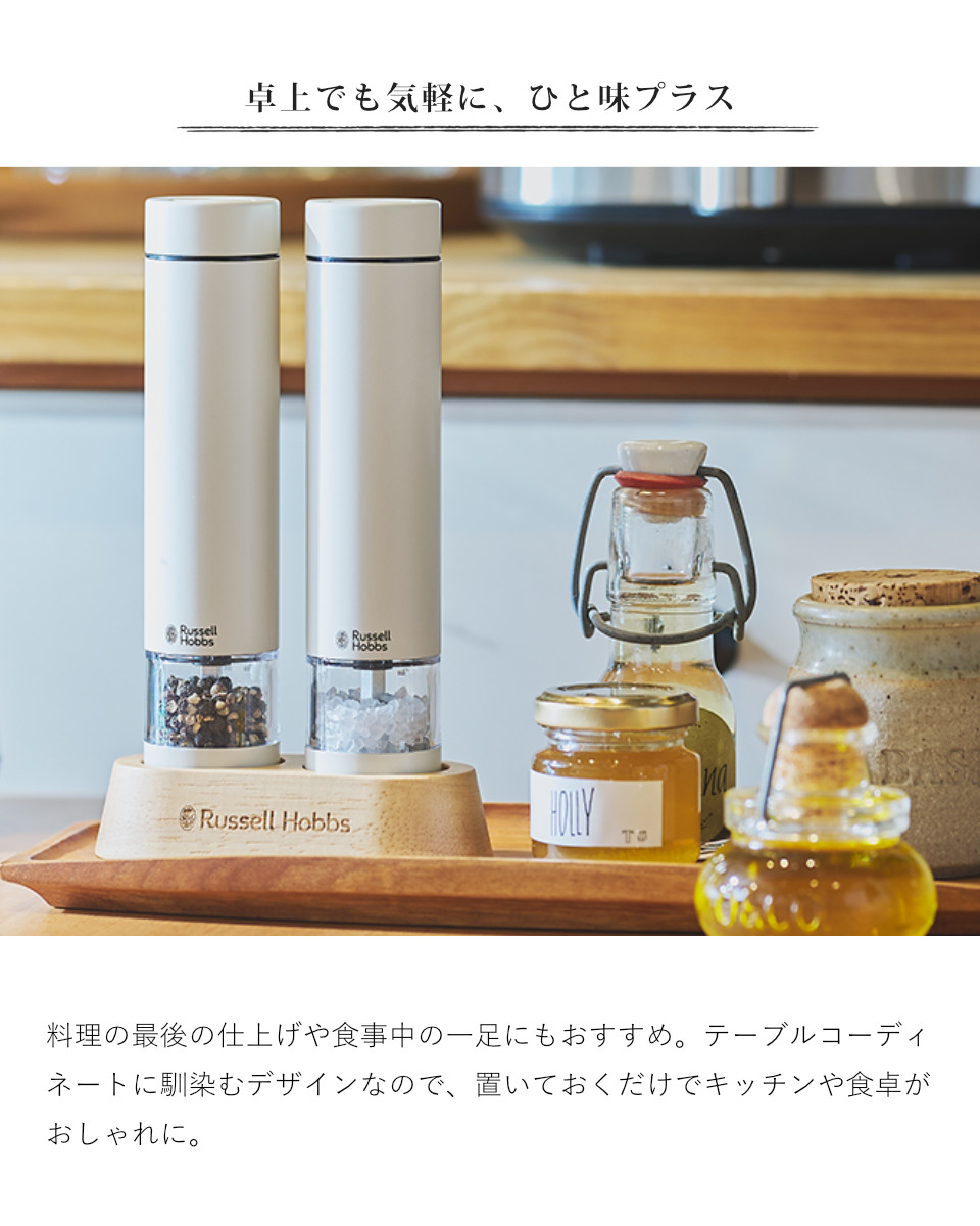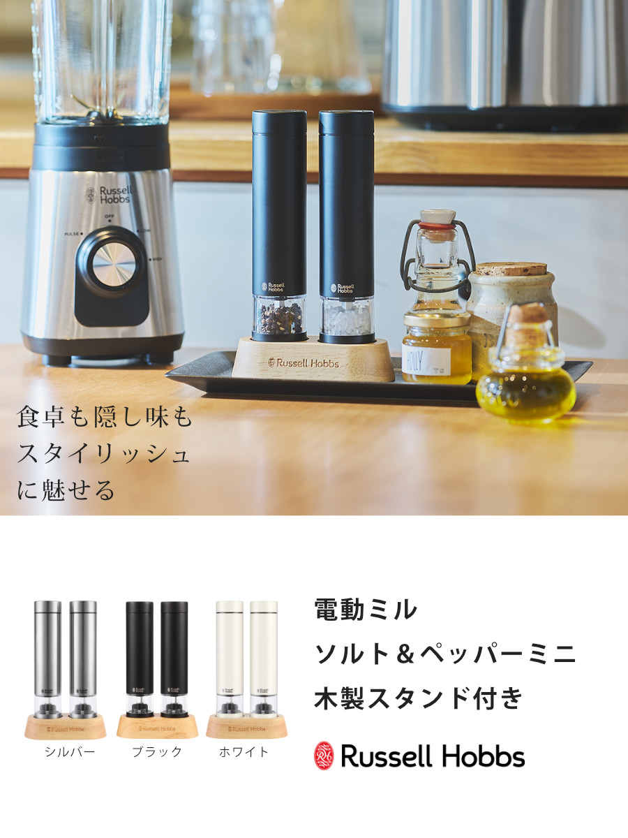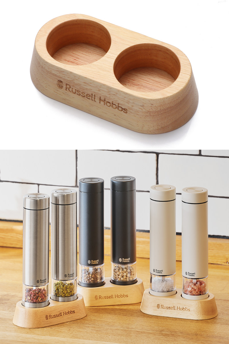 Russell Hobbs 電動ミル ミニ 2本セット 木製スタンド付き ソルト&ペッパーミル