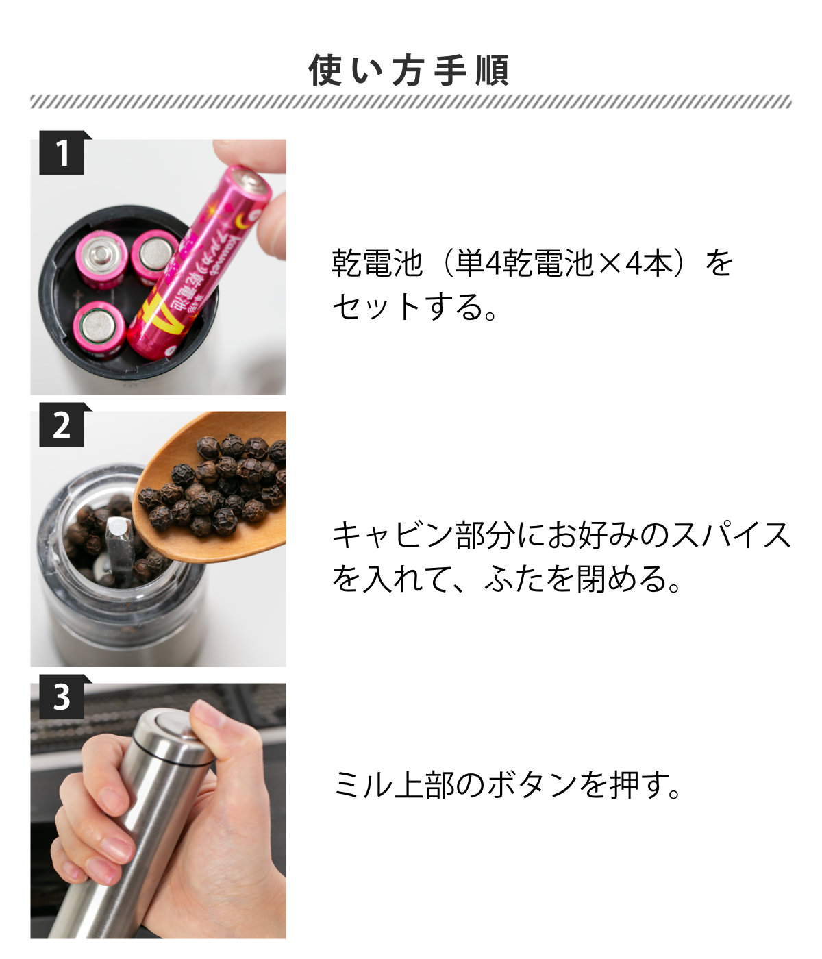 | 注意事項 | ※乾電池は別売りです。 ※マンガン乾電池は使用できません。 ※充電式乾電池は使用できます。 ※商品ページ内にはリニューアル前の商品を含む画像を使用しています。 |