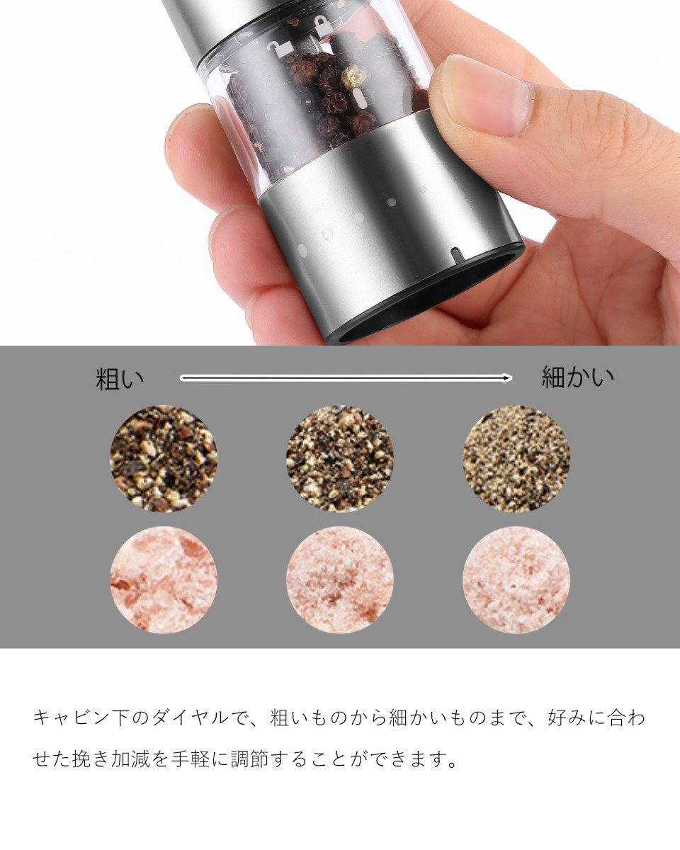また、グラインダー部に残る細かなコショウや塩がテーブルなどに散って汚れないように、受け皿の役割にもなります。