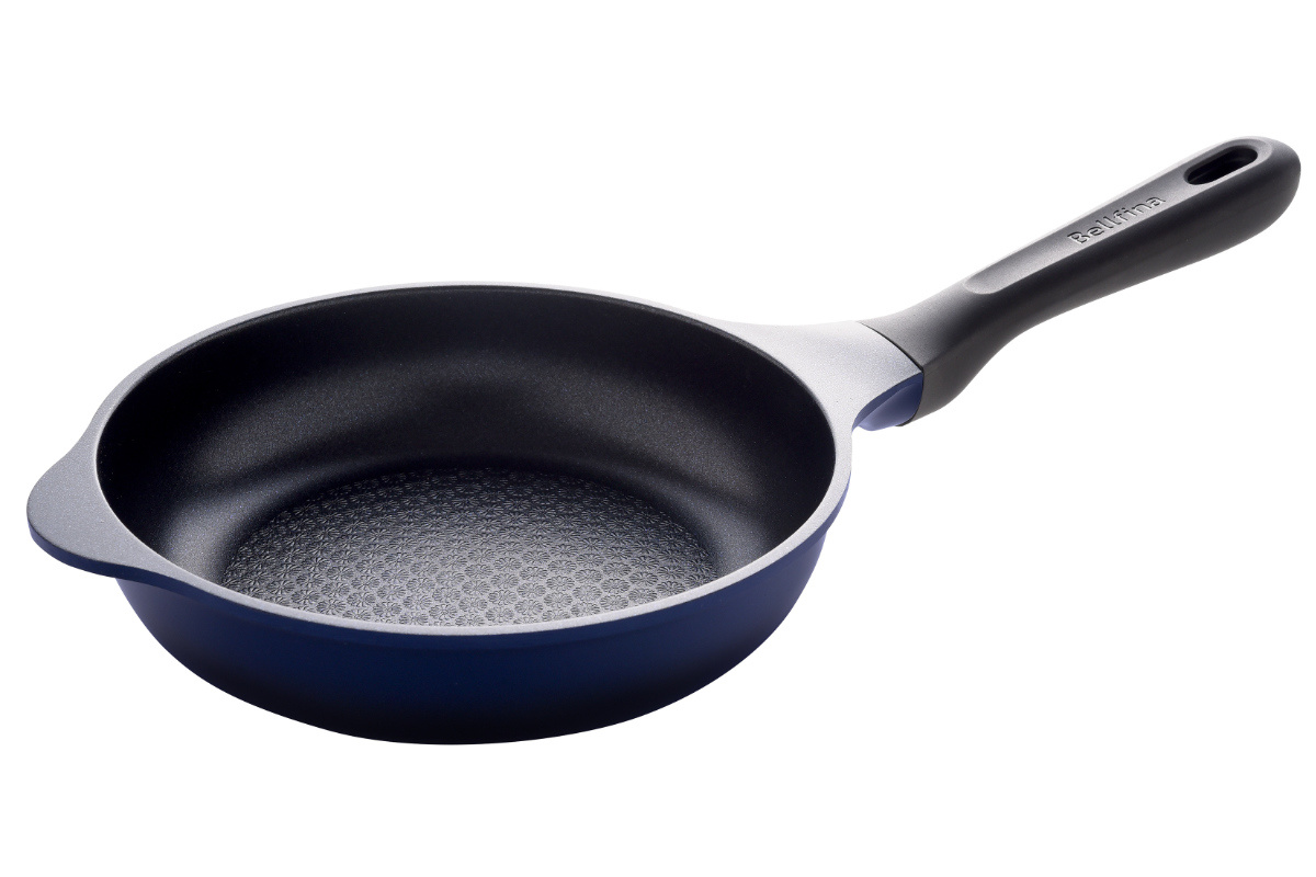 毎日の調理に使いやすい20cmサイズです。軽量設計で手首の負担を軽減し、サッと使える手軽さが魅力です。底面はしっかりと肉厚を持たせて熱を均一に伝えつつ、側面の余分な厚みを抑えることで、軽さと使いやすさを両立しています。