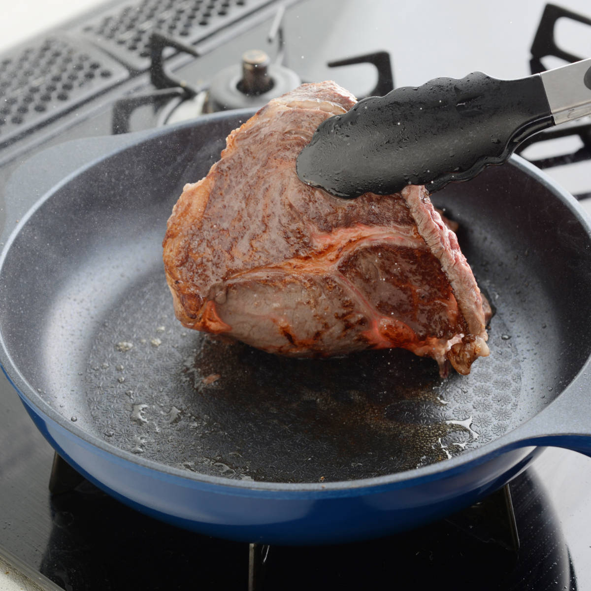 底面は厚く作られており、蓄熱性が高いためじっくりと均一に熱が伝わります。食材に均一な焼き目を付けたい調理にも向いています。
