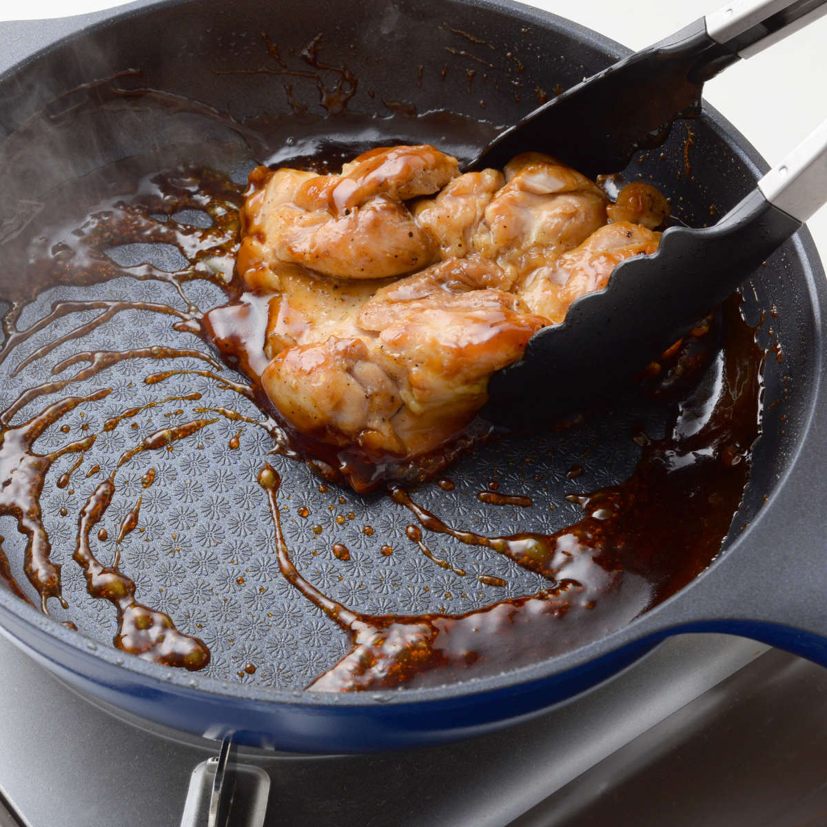 特殊4層コーティングは、耐摩耗試験100万回をクリアした高い耐久性を誇ります。焦げ付きやすいソースも、スルッと弾いて調理でき、こびりつきにくいためお手入れも簡単です。