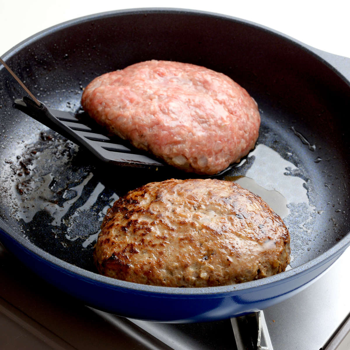 底面は厚く作られており、蓄熱性が高いためじっくりと均一に熱が伝わります。食材に均一な焼き目を付けたい調理にも向いています。