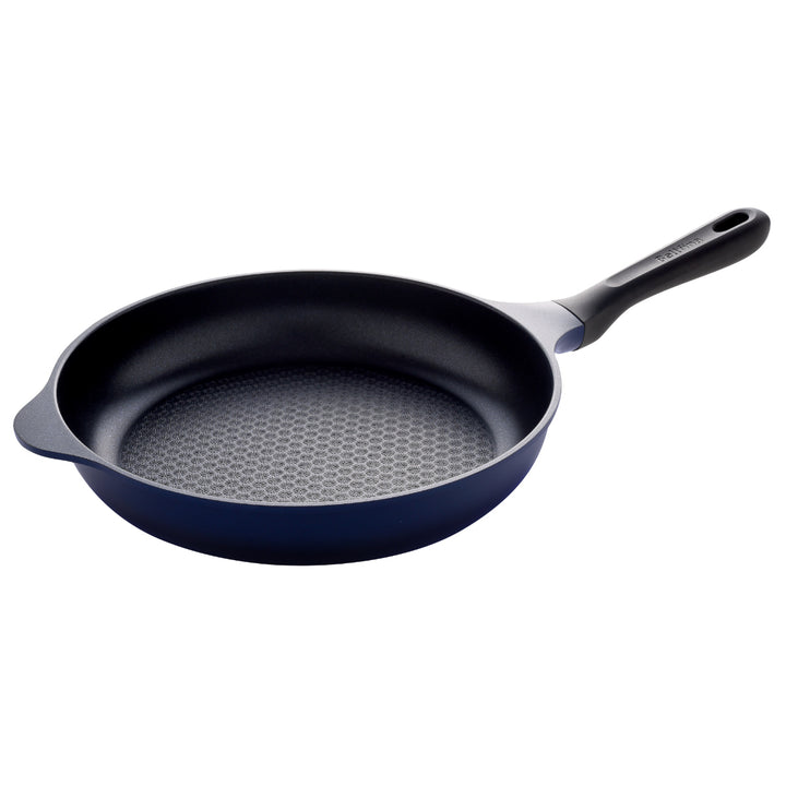 3~4人分のおかずをまとめて調理できる28cmです。軽量設計で手首の負担を軽減し、サッと使える手軽さが魅力です。底面はしっかりと肉厚を持たせて熱を均一に伝えつつ、側面の余分な厚みを抑えることで、軽さと使いやすさを両立しています。