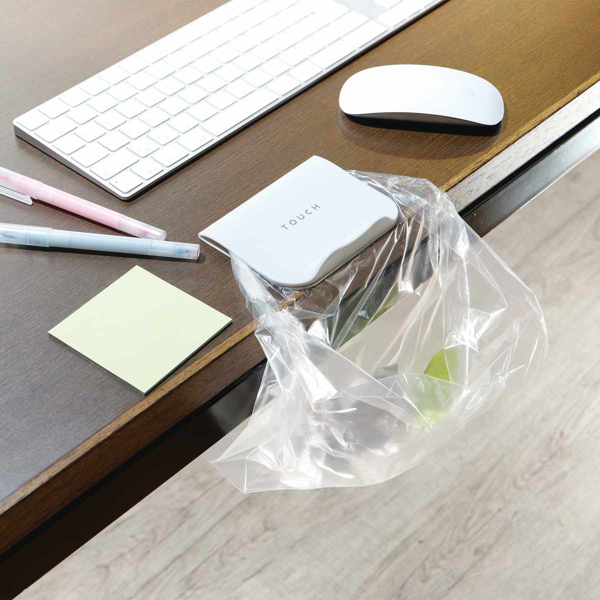 キッチンだけでなく、書斎のデスクやリビングのテーブルなどに貼り付けて、ゴミ入れとして使うことができます。ちょっとした紙くずやお菓子の包装もサッと捨てられて便利です。