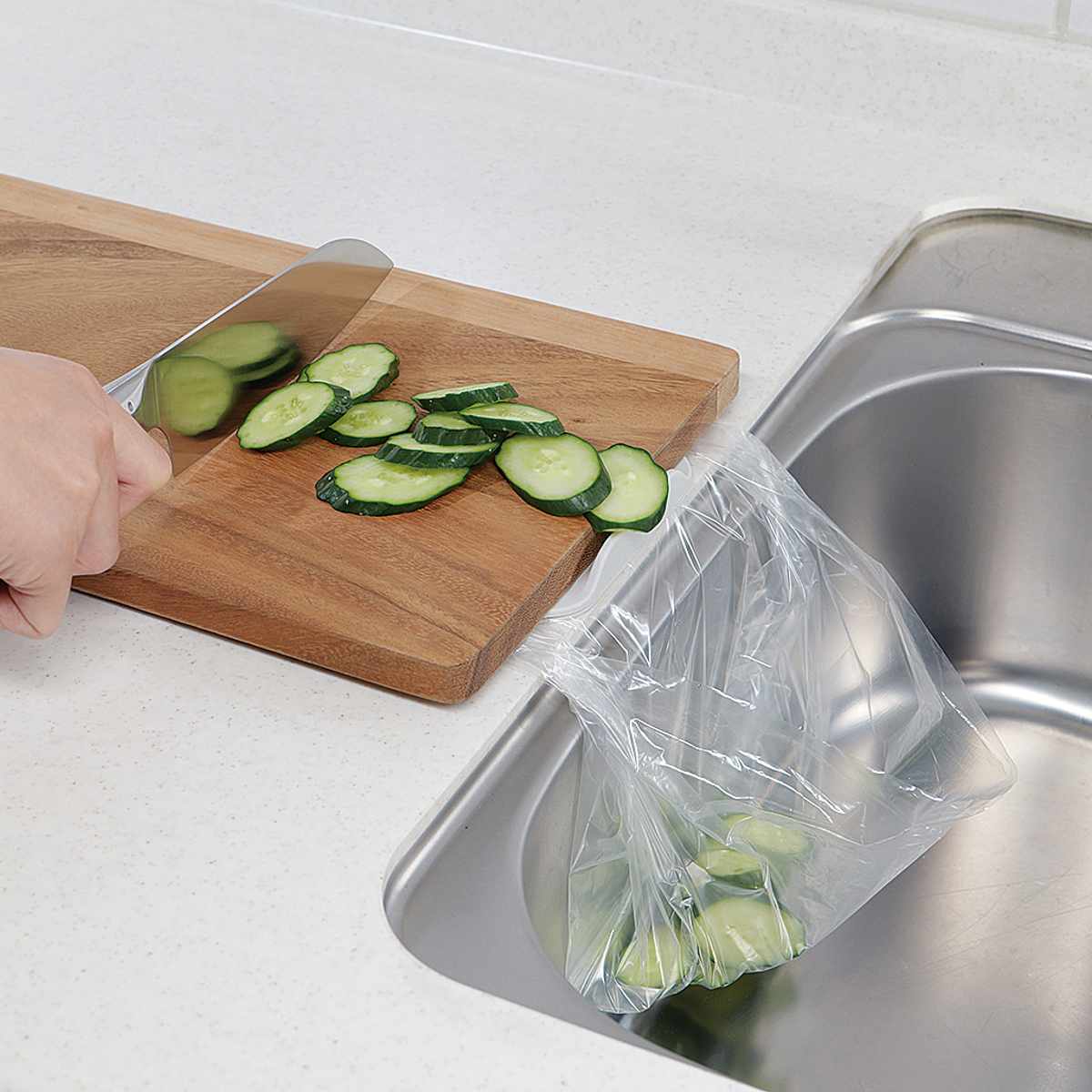 ●シンクに貼り付けて、ポリ袋をはさむだけで簡単にセットできます。