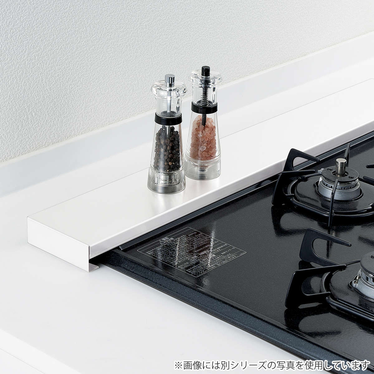 コンロ奥の排気口に置くだけで、油はねやゴミの侵入をしっかり防ぎます。伸縮するので色々なサイズのビルドインコンロにお使いいただけます。圧迫感のないフォルムと、清潔感のあるホワイトカラーでキッチンにすっきり馴染みます。