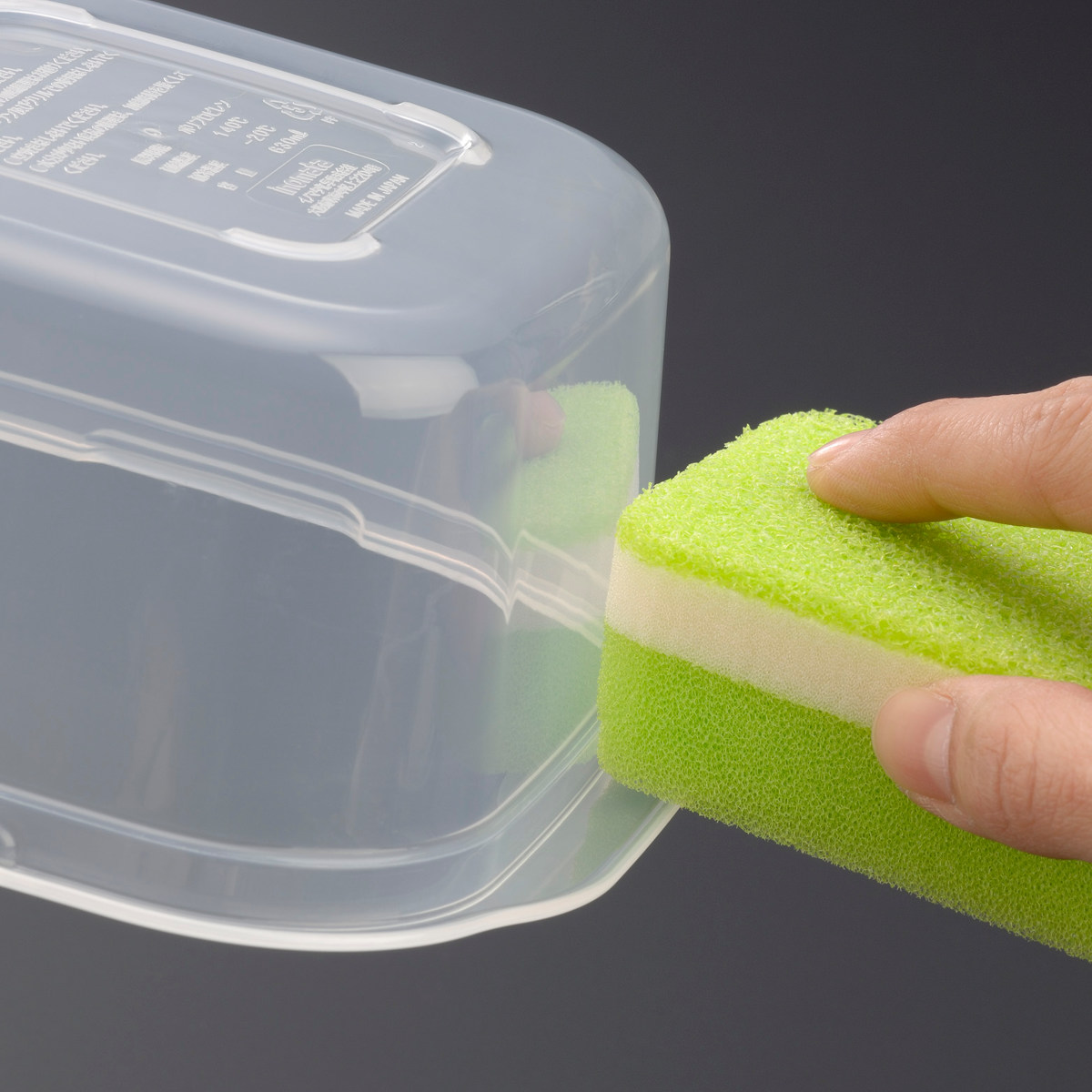 フタと本体のフチがフラット形状なので、凹凸に汚れがたまりにくく、スポンジだけで簡単に洗えます。清潔に保ちやすいのも嬉しいポイントです。