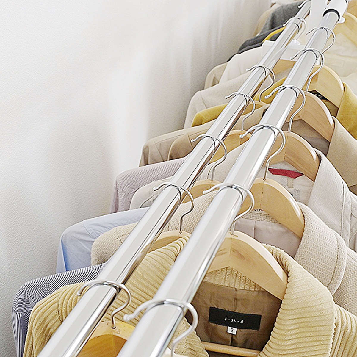 ダブルハンガーを採用することで、限られたスペースでも衣類を効率よく収納できます。前後2段のバーにかけることで、高さを変えずに収納量を約1.5倍に増やせるのが特徴です。