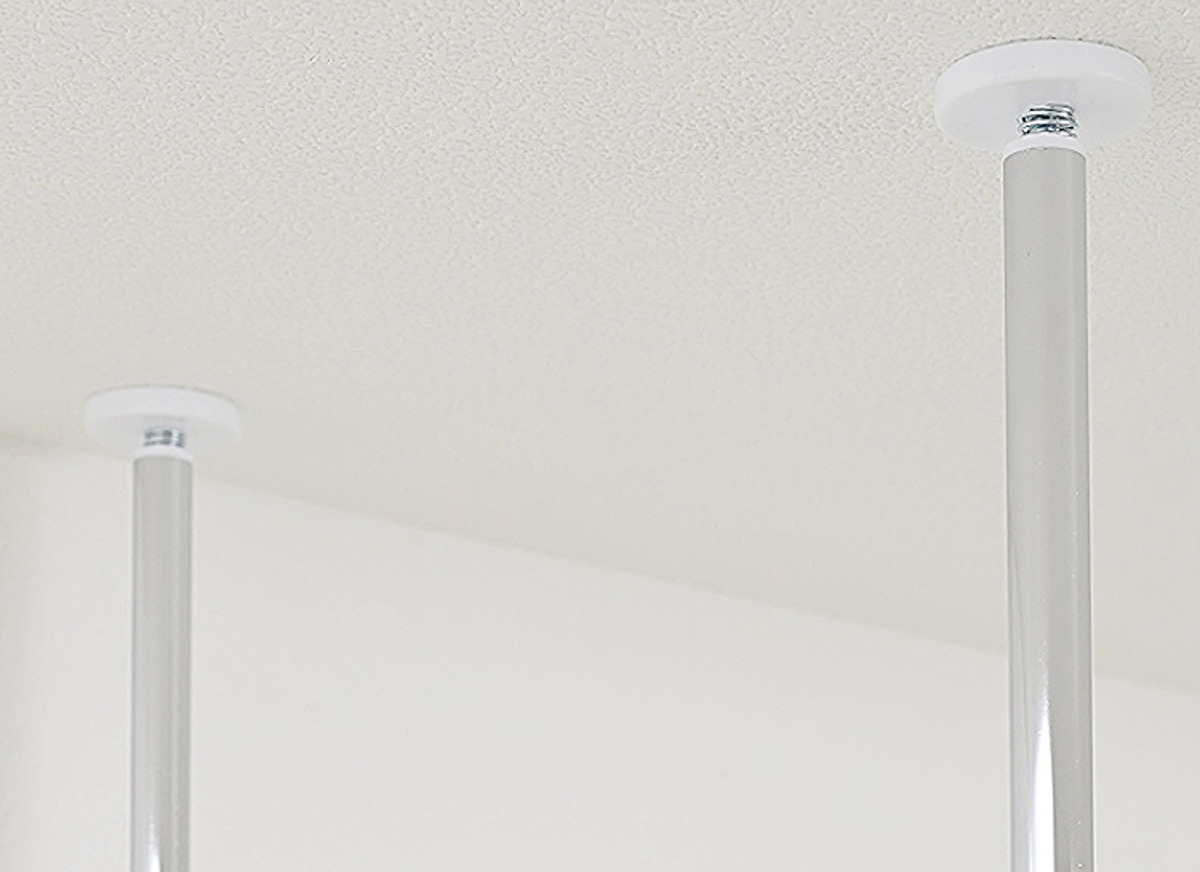天井側の突っ張りパイプは4本別々に伸縮できる仕様で、天井に梁などの段差があってもしっかりと突っ張れます。天井に穴をあけずに設置できるので、賃貸のお部屋にお住まいの方にもおすすめです。