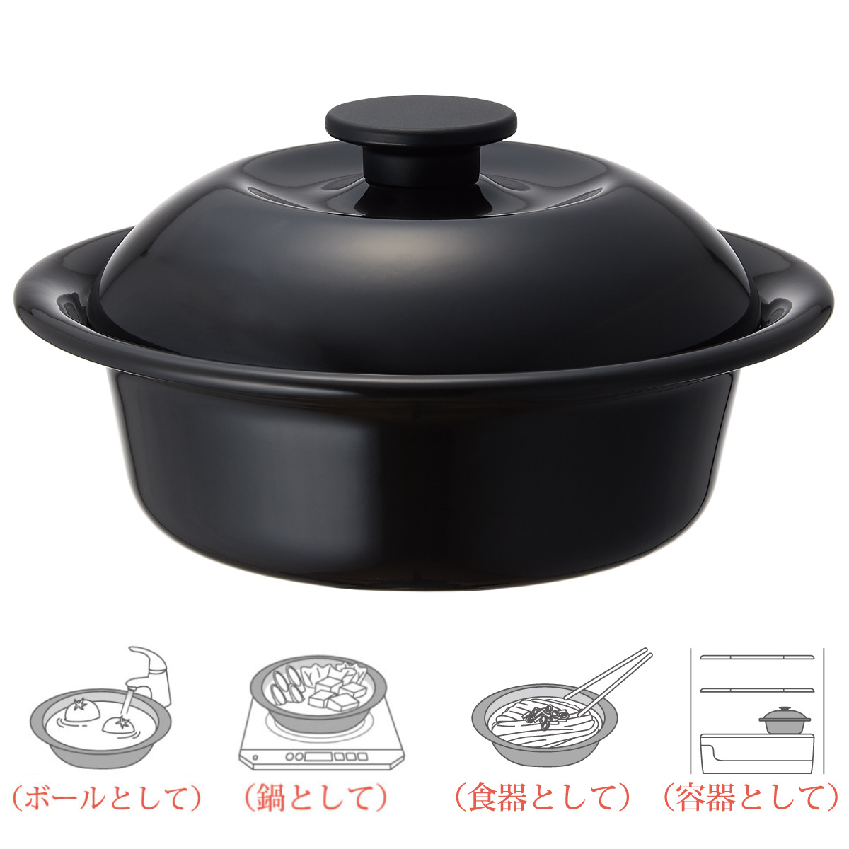 ホーローは優れた保温力で温度を逃がしにくく、素材の甘味と旨味を際立たせます。汚れや雑菌が繁殖しにくいので保存にも向いており、下ごしらえから調理、食器、保存容器とこれひとつで4役こなします。