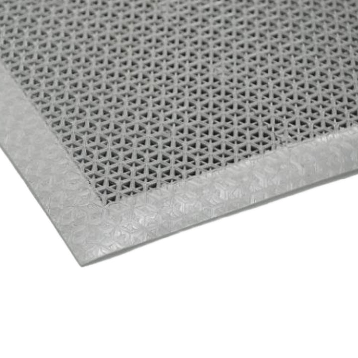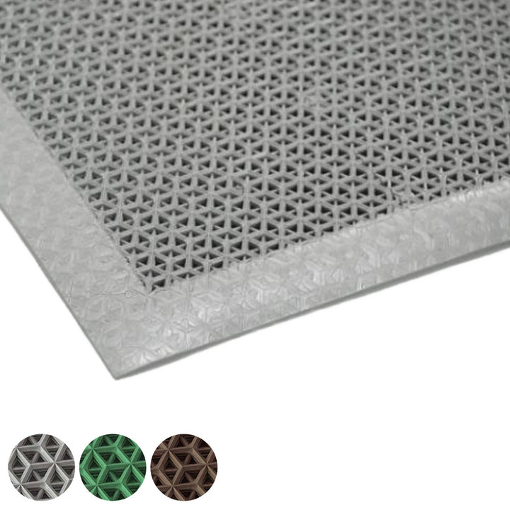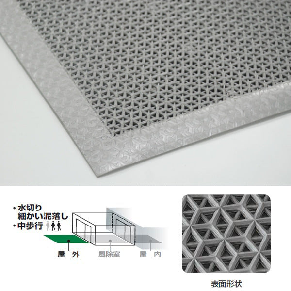 三角断面のブレードが抜群の除塵効果を発揮します。また、ダブルハニカム構造の三角穴により砂やホコリを表面に残しません。また、細かい土砂に最適。水切れも良く滑りにくいので屋外や風除室に最適です。
