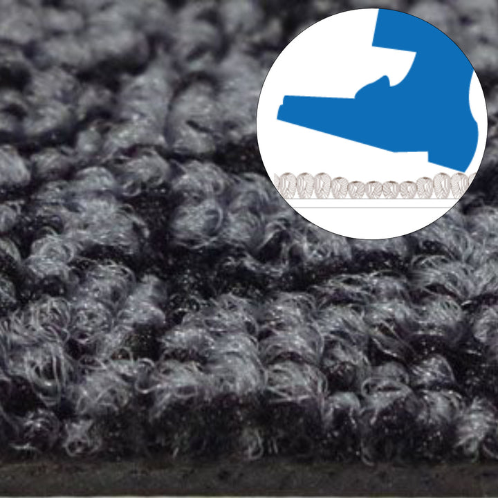 ループ形状が靴底のゴミを掻き落とし、抜群の泥落とし効果を発揮し、ボリュームを持たせた織柄は心地よい歩行間を演出します。