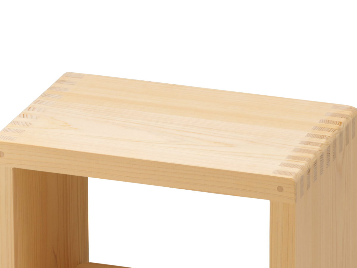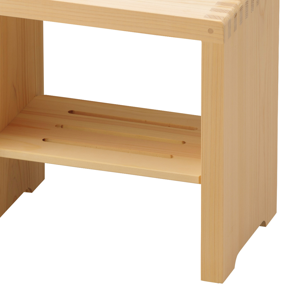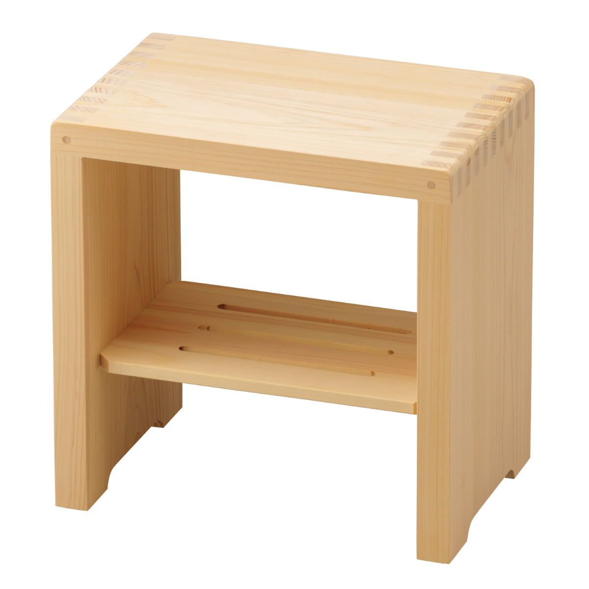 ●天然木の風合いが魅力的な、ひのき材を使用した座面高さ約30cmの箱型風呂椅子です。