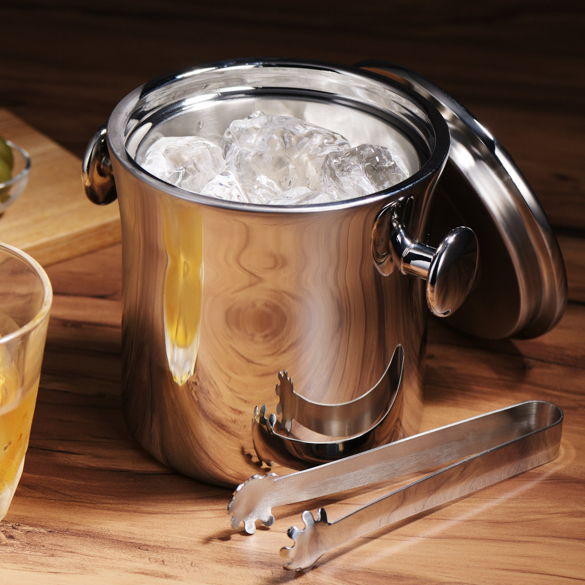 美しく高級感のあるミラー仕上げの二重構造アイスペール 1.1L