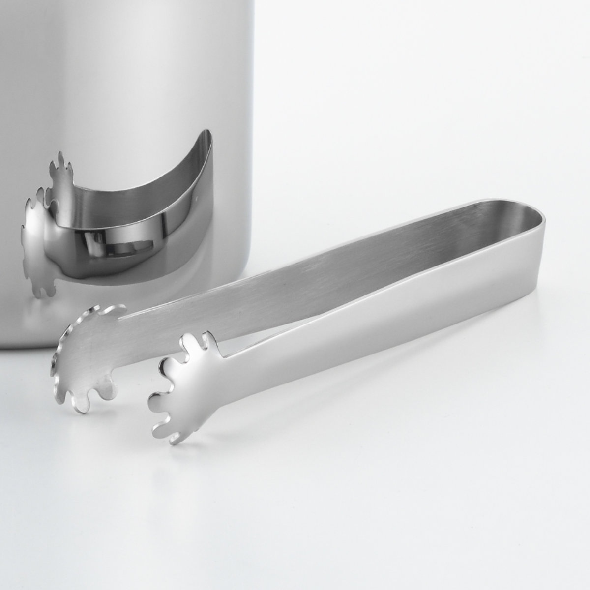 氷をしっかりつかめる専用トング付きです。先端が滑りにくい形状になっているため、丸い氷でも安定して取り出しやすく、使い勝手に優れています。