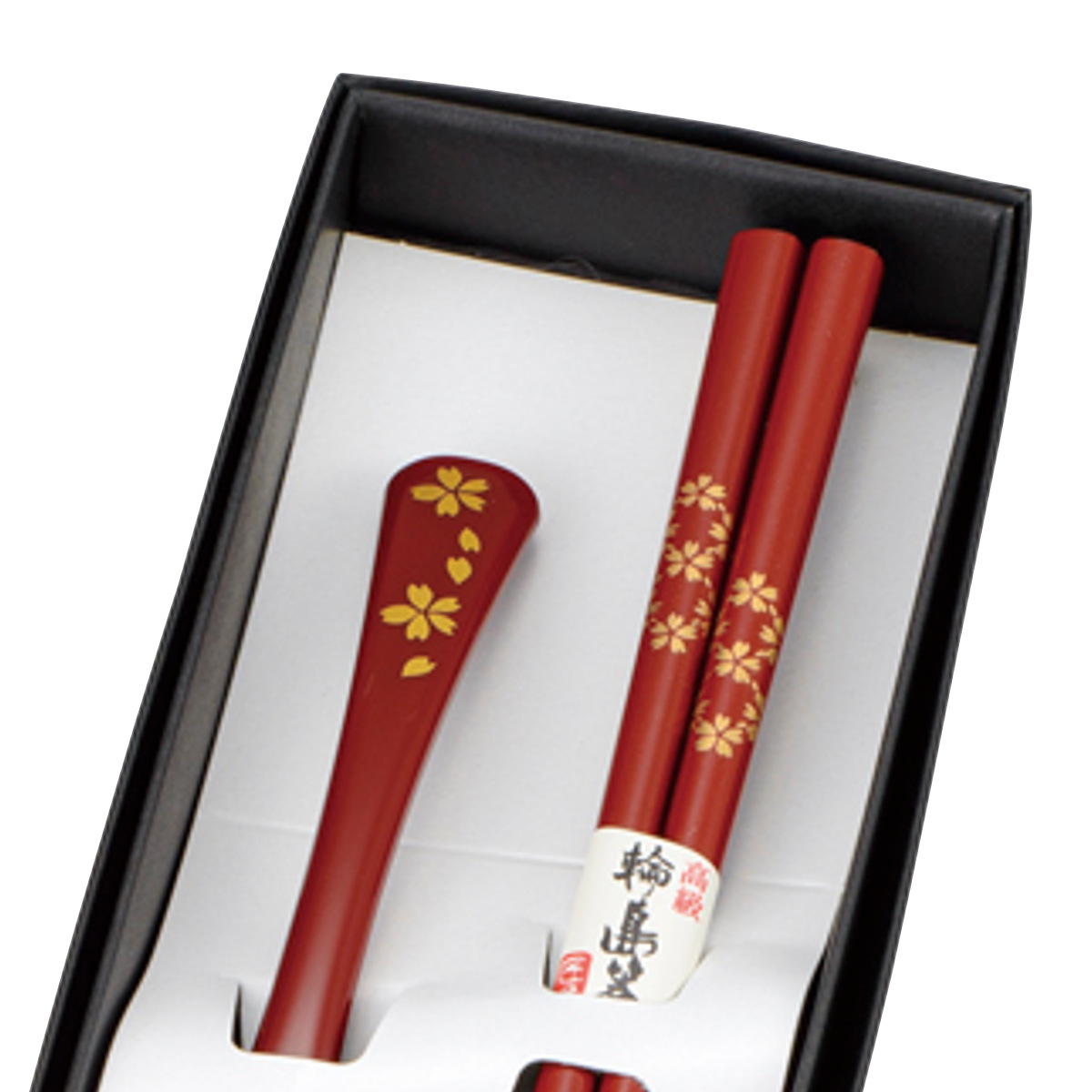 持ち手に描かれた桜は、門出や祝いの気持ちを象徴し、食卓にさりげない華やかさを添えます。化粧箱入りなので、結婚祝い、新生活、敬老の日などの贈りものにも最適です。