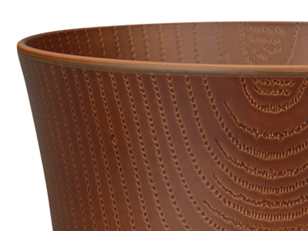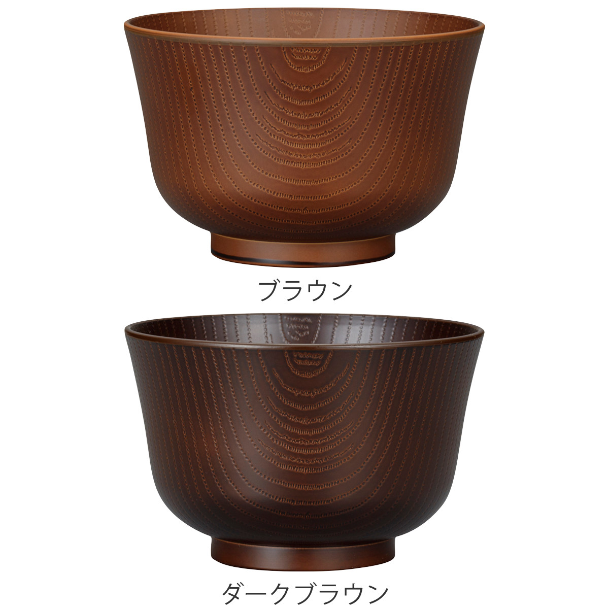 器の内側と外側には木目調のデザインが施されています。食卓に馴染みやすく、温かい雰囲気に包まれるような、ぬくもりを感じられるデザインです。