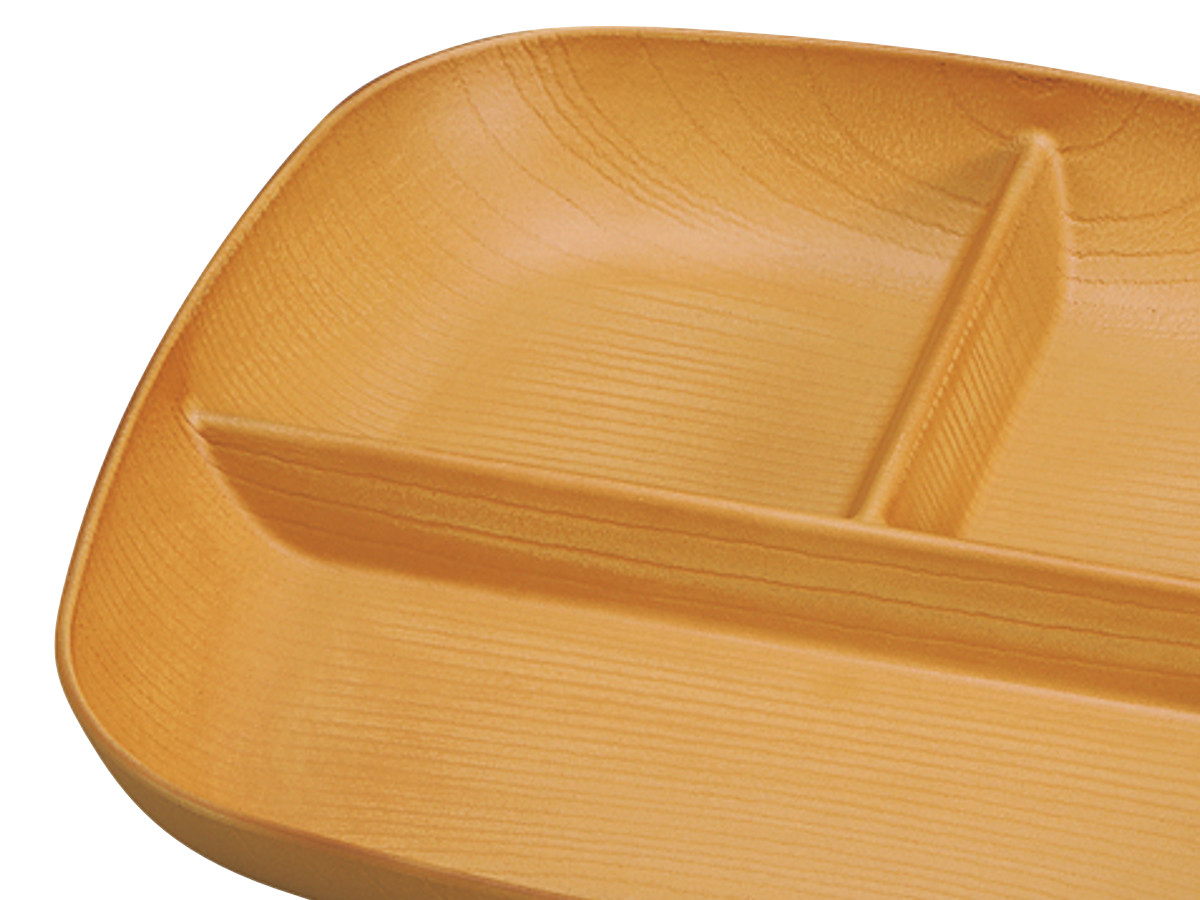 樹脂製で軽くて割れにくい欅杢目スクウェアプレート 22cm