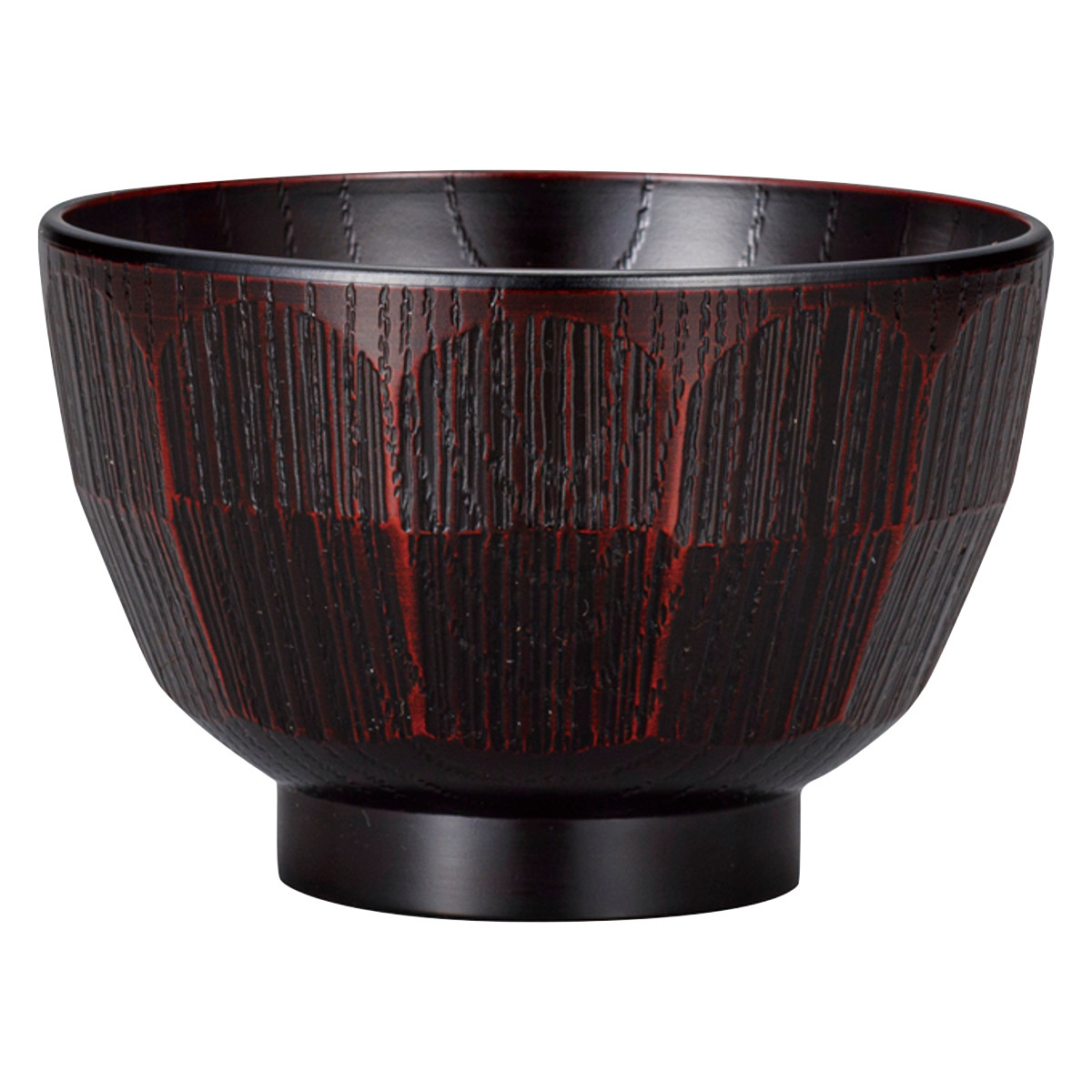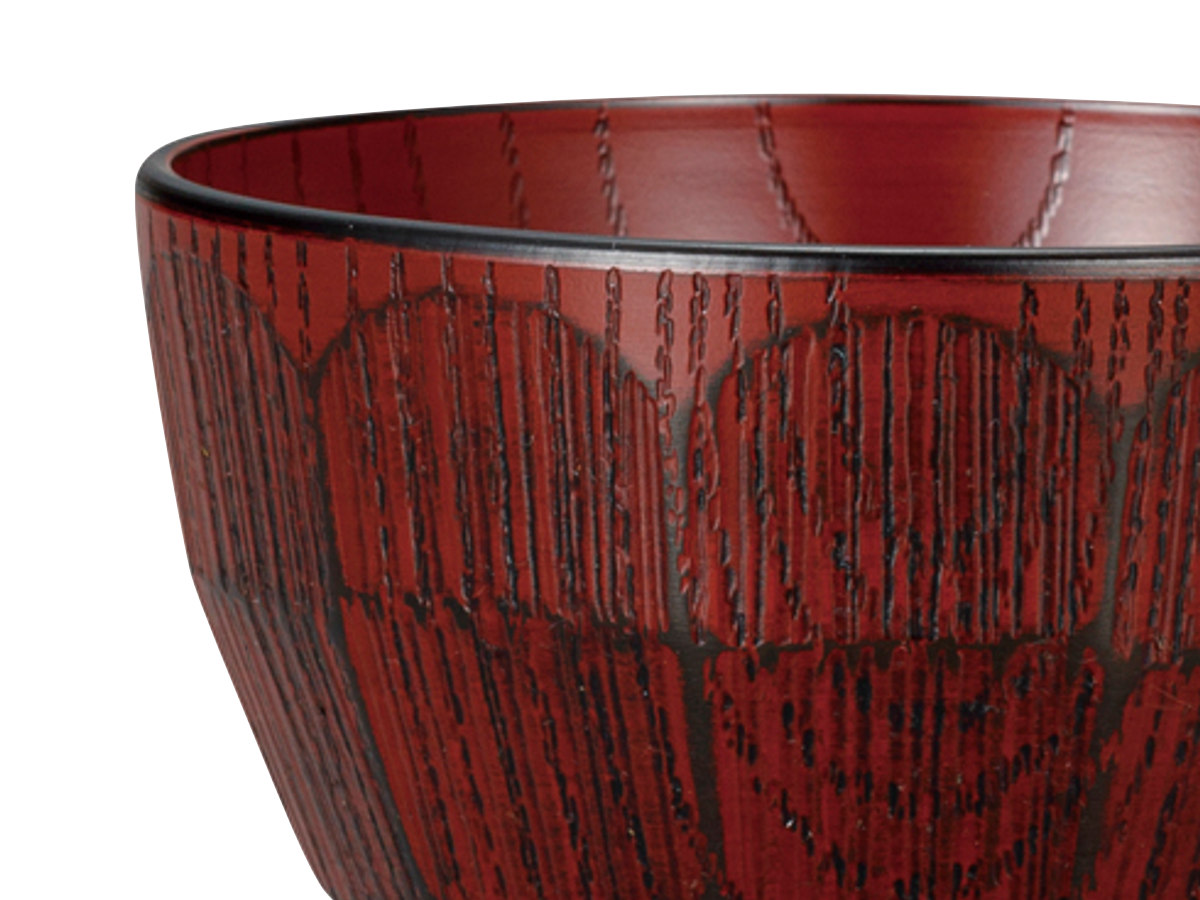 樹脂製で軽くて割れにくい汁椀です。欅の木目にはつり調の凹凸を施した、手に馴染むデザインです。味噌汁やお吸い物など普段使いに最適です。