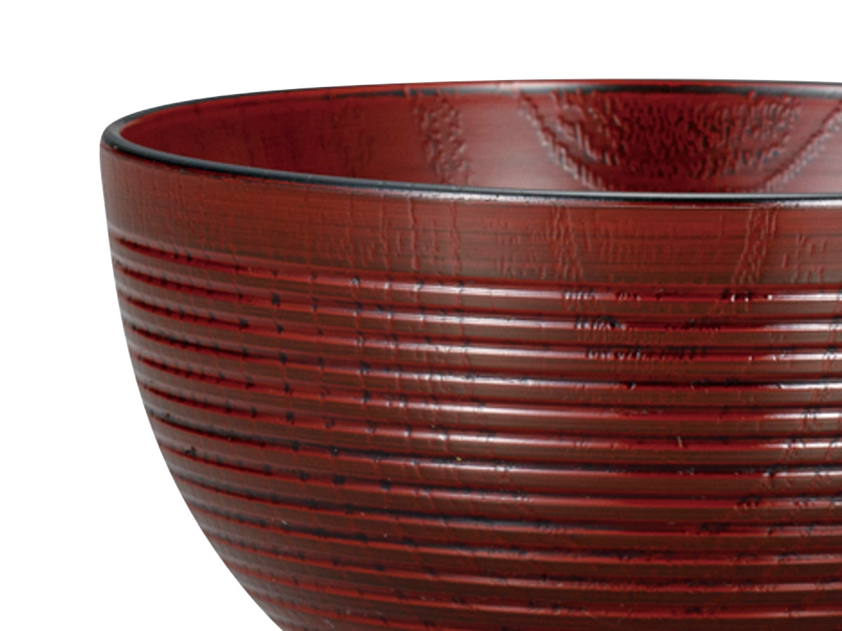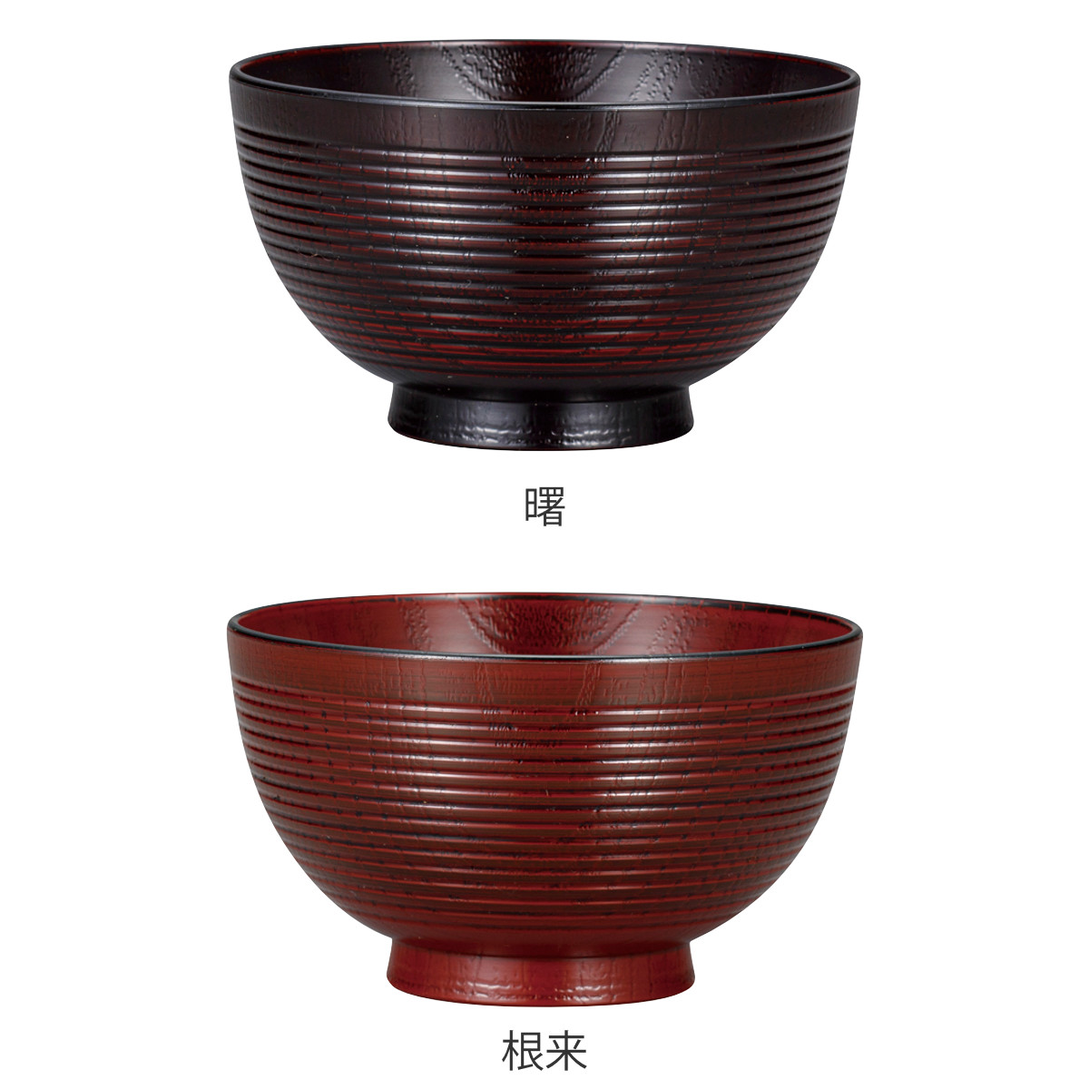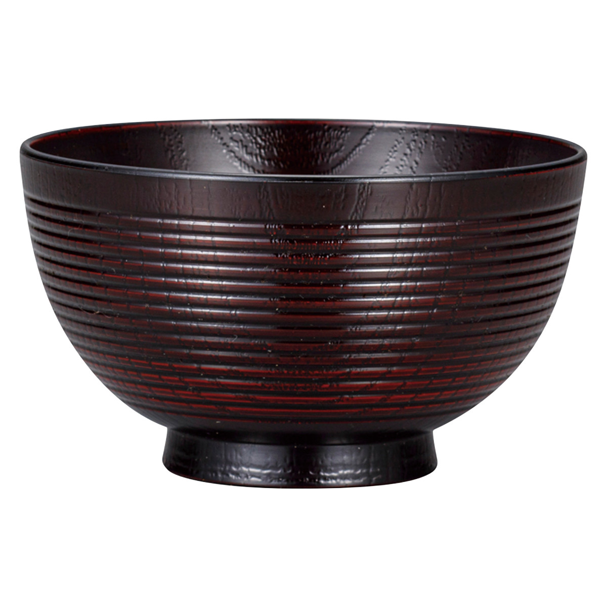 樹脂製で軽くて割れにくい汁椀です。欅を思わせる木目に千筋模様を施した、手に馴染むデザインです。味噌汁やお吸い物など普段使いに最適です。