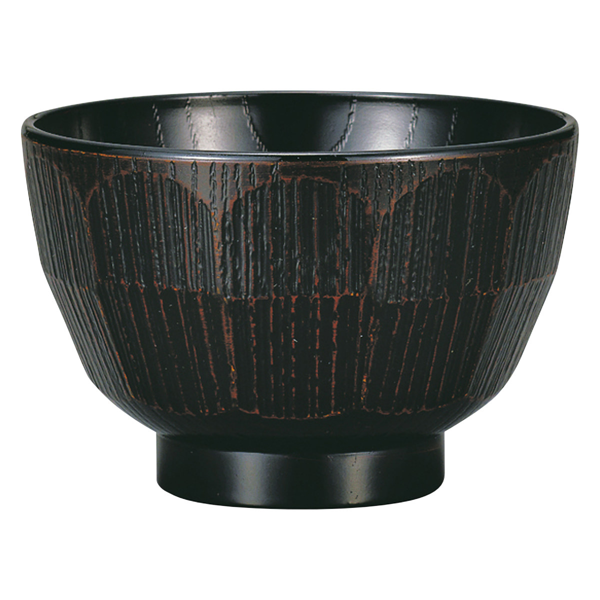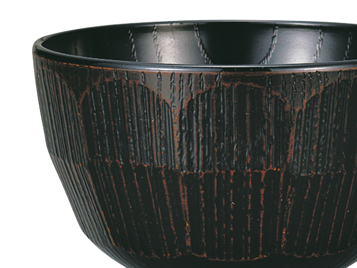 樹脂製で軽くて割れにくい汁椀です。欅の木目にはつり調の凹凸を施した、手に馴染むデザインです。味噌汁やお吸い物など普段使いに最適です。